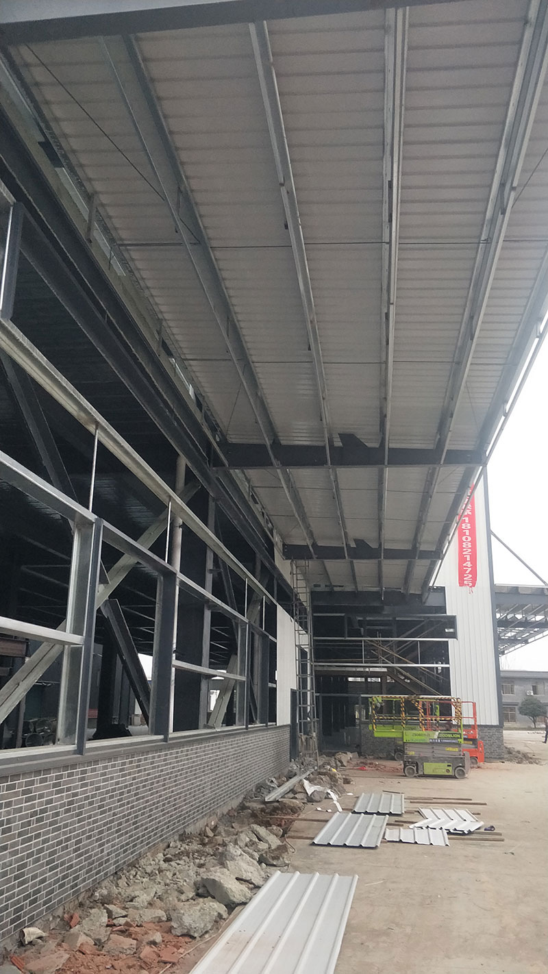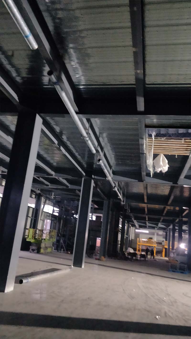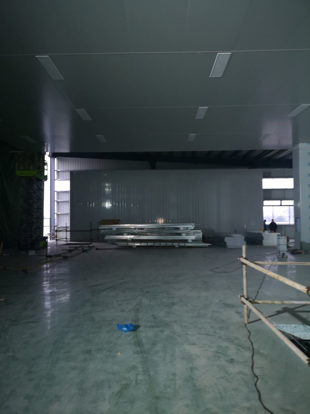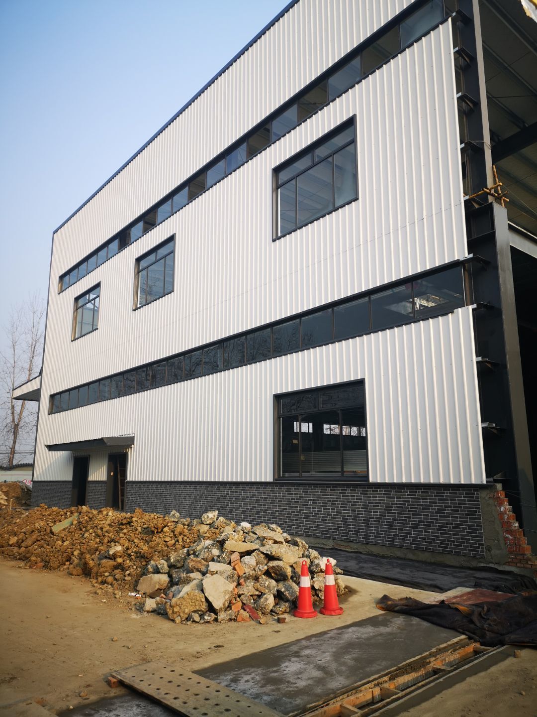 廠房外觀裝玻璃,內(nèi)裝彩鋼板到現(xiàn)場(chǎng),隔斷開(kāi)始施工