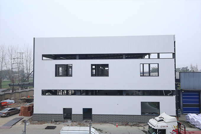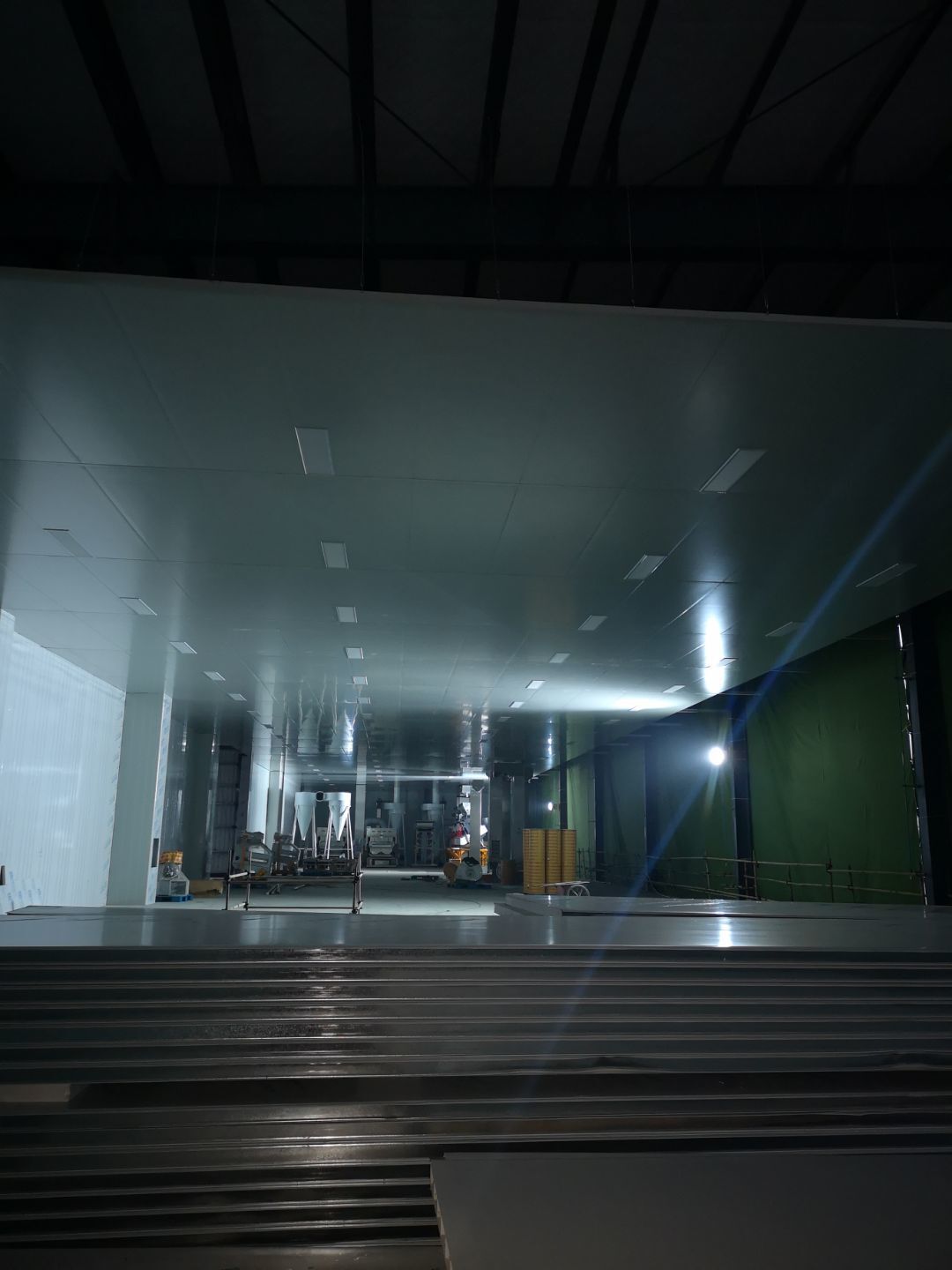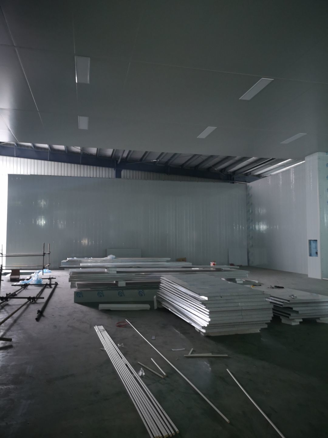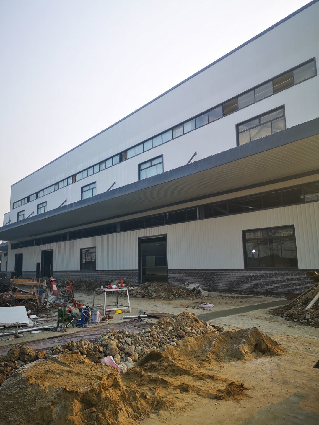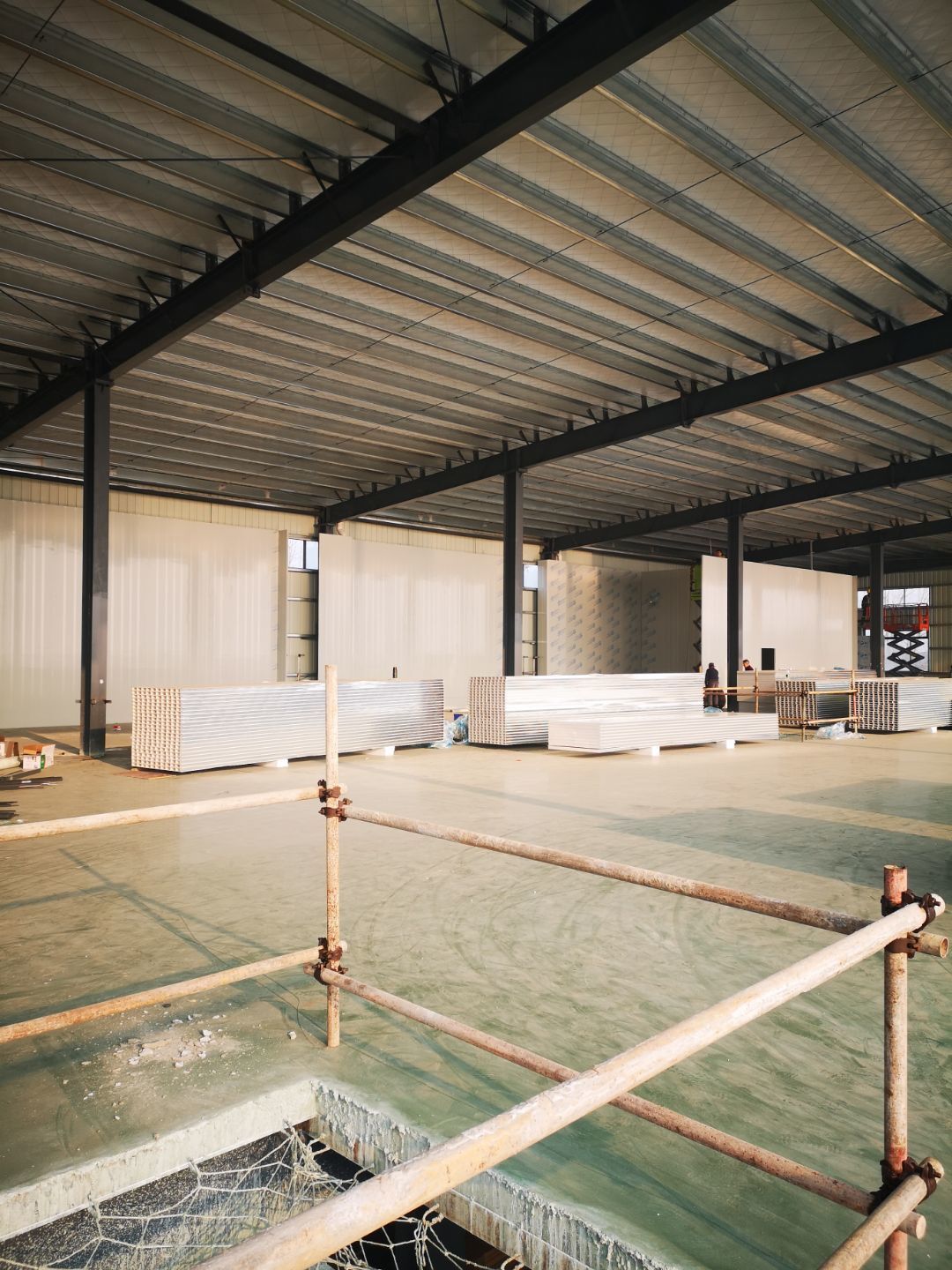 廠房外觀裝玻璃,內(nèi)裝彩鋼板到現(xiàn)場(chǎng),隔斷開(kāi)始施工