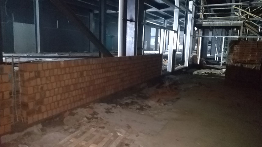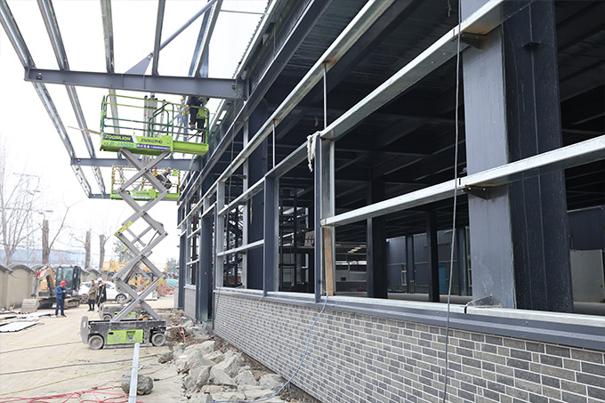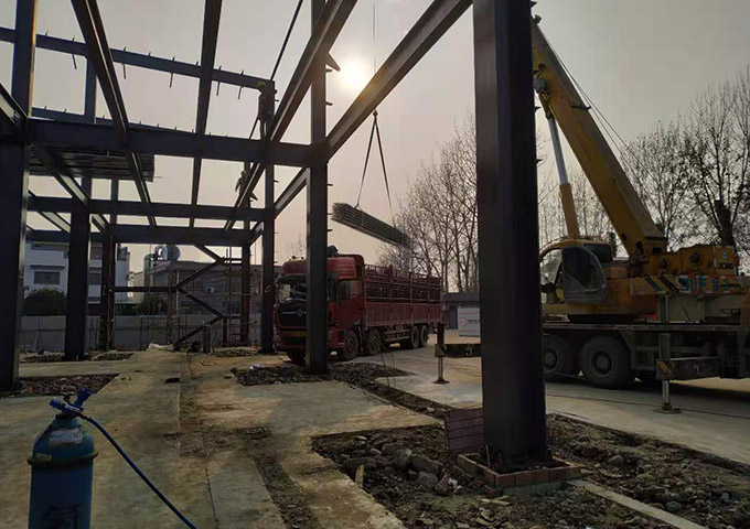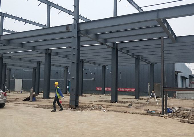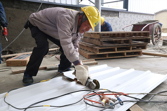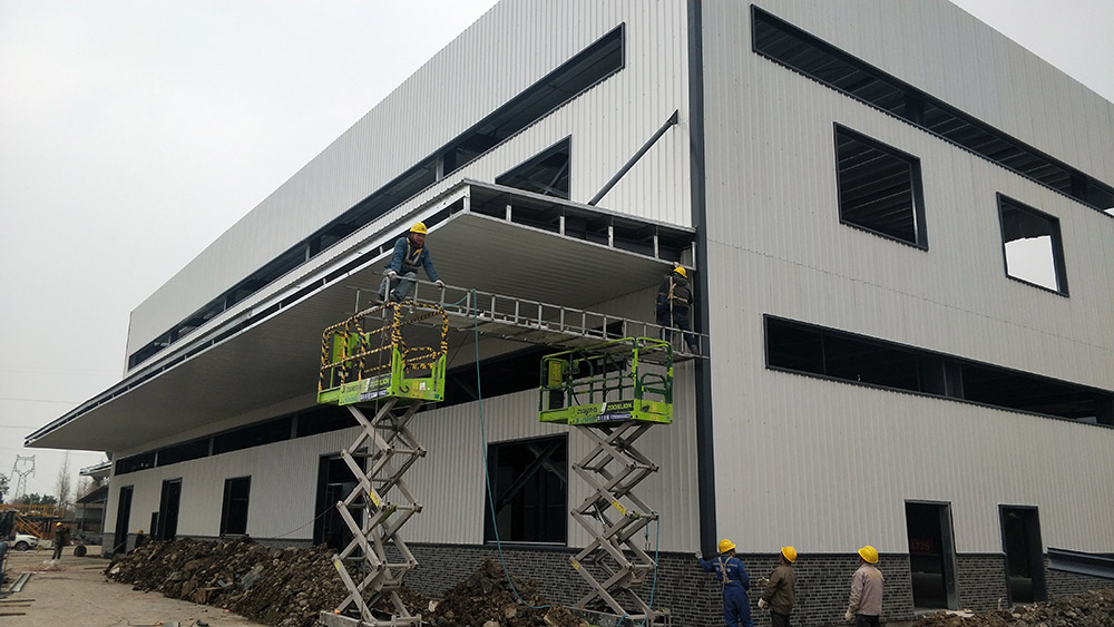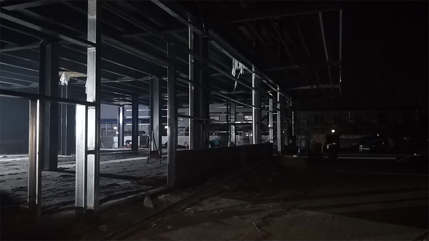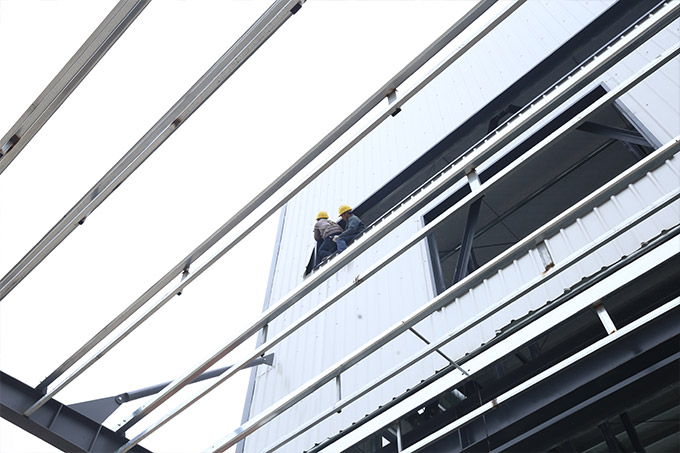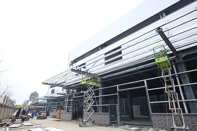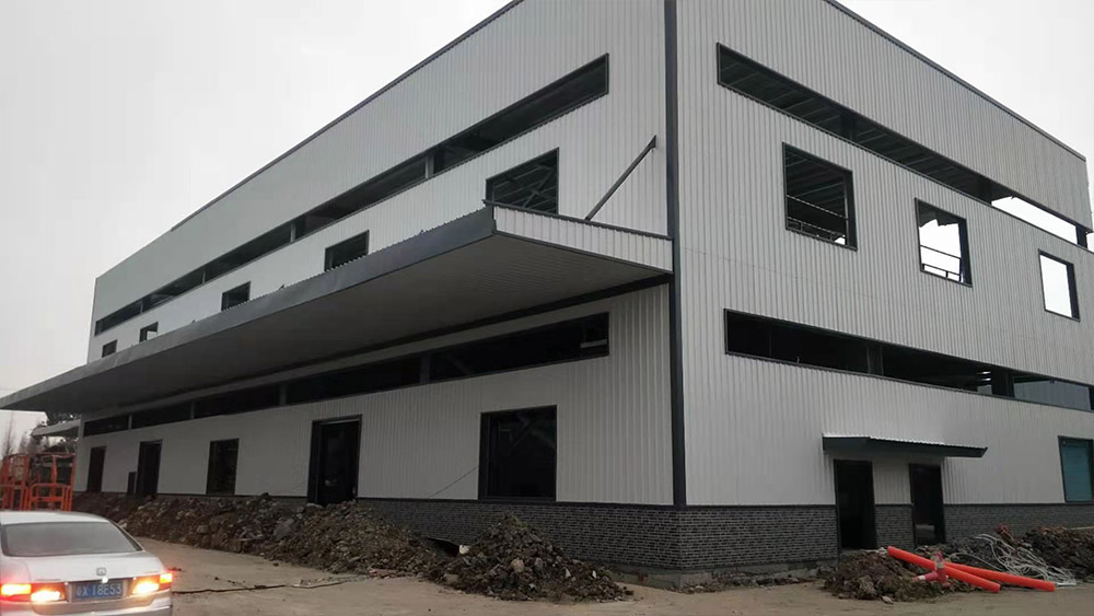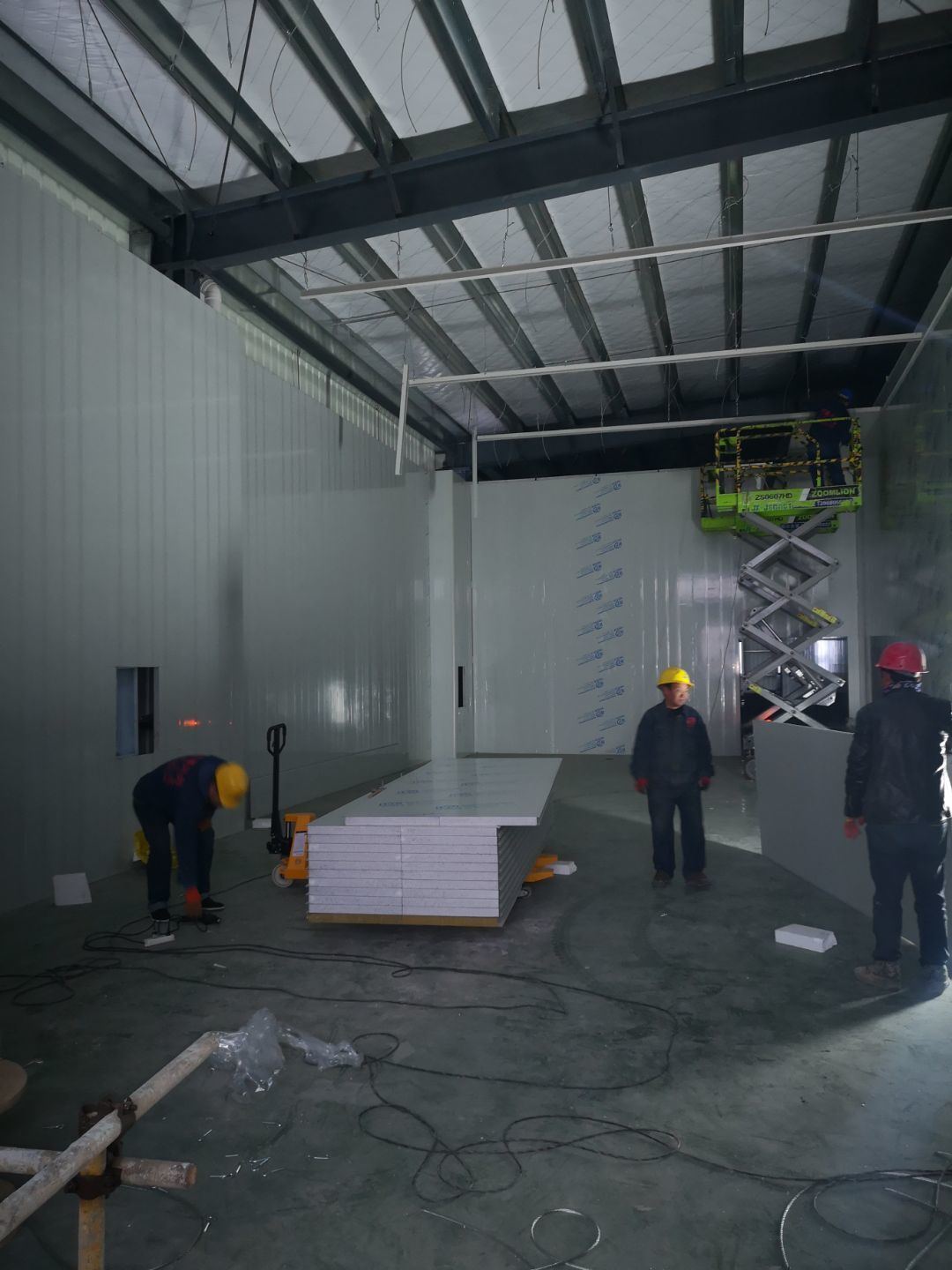 廠房外觀裝玻璃,內(nèi)裝彩鋼板到現(xiàn)場(chǎng),隔斷開(kāi)始施工