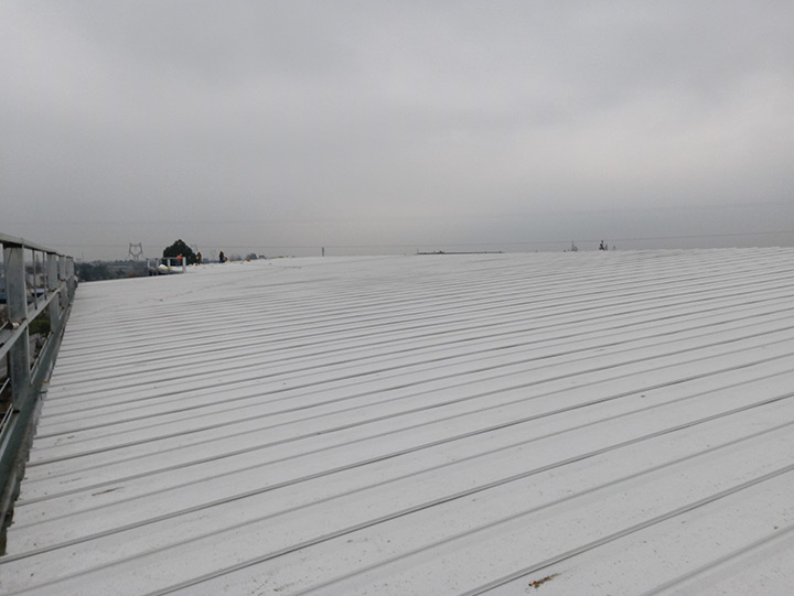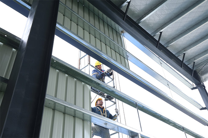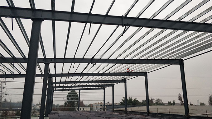 1.墻檁條安裝完成90%;2.落水管預(yù)埋完成40%;3.覆蓋地坪養(yǎng)護(hù)完成100%;4.屋面檁條安裝完成5%