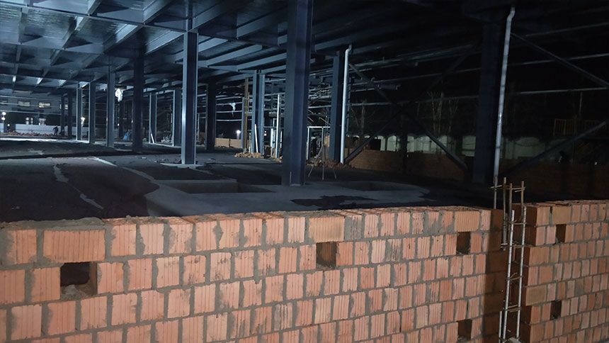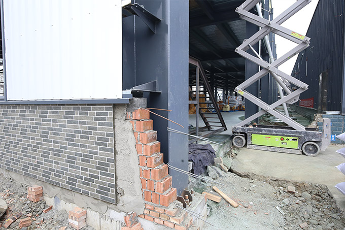1.鋼構(gòu)墻面工程完成40%;2.磚墻砌筑完成60%