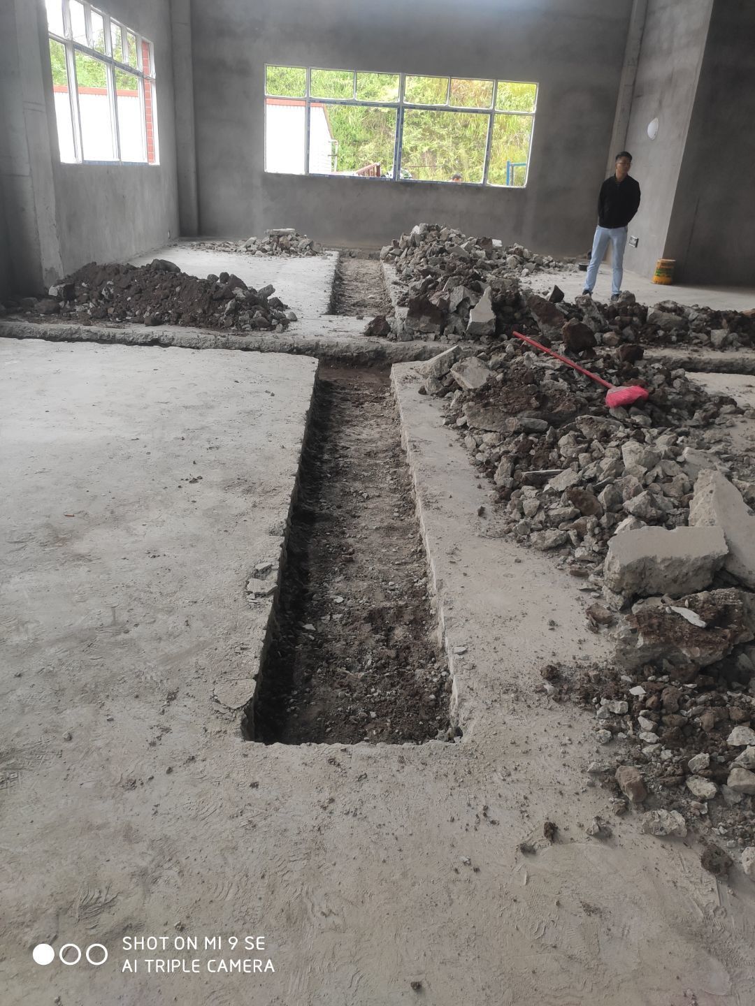 建渣清理完成,排水管安裝,臨時照明電接通