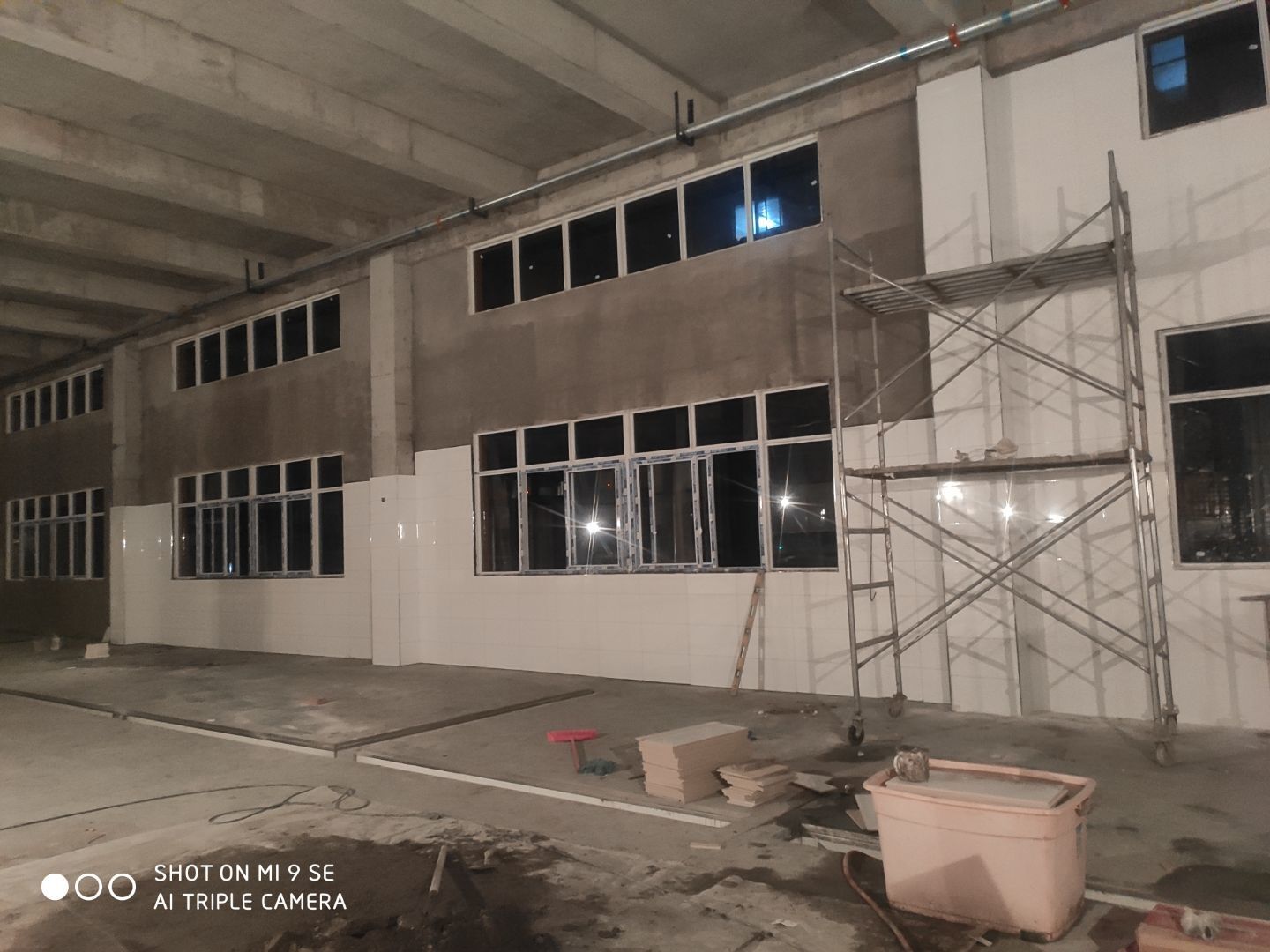 中央廚房車間收尾工作 燈,開關插座完成百分之三十 墻腳線完成