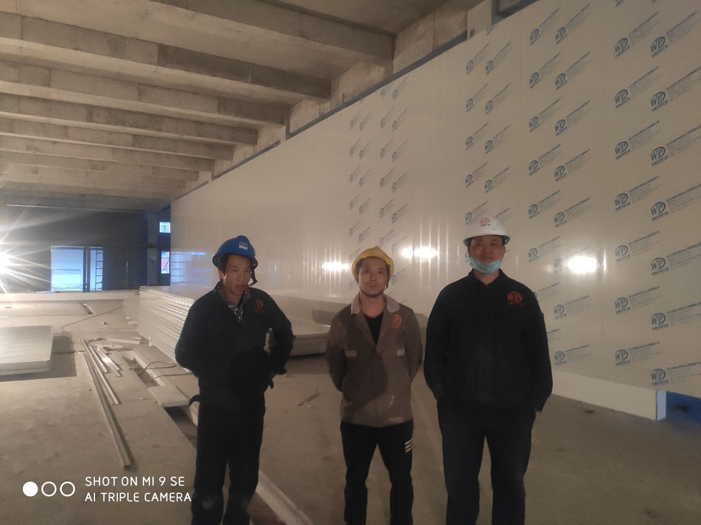 1.凍庫總體施工完成百分之八十 2.瓷磚完成百分之五十 3.垃圾清理,地面衛生打掃