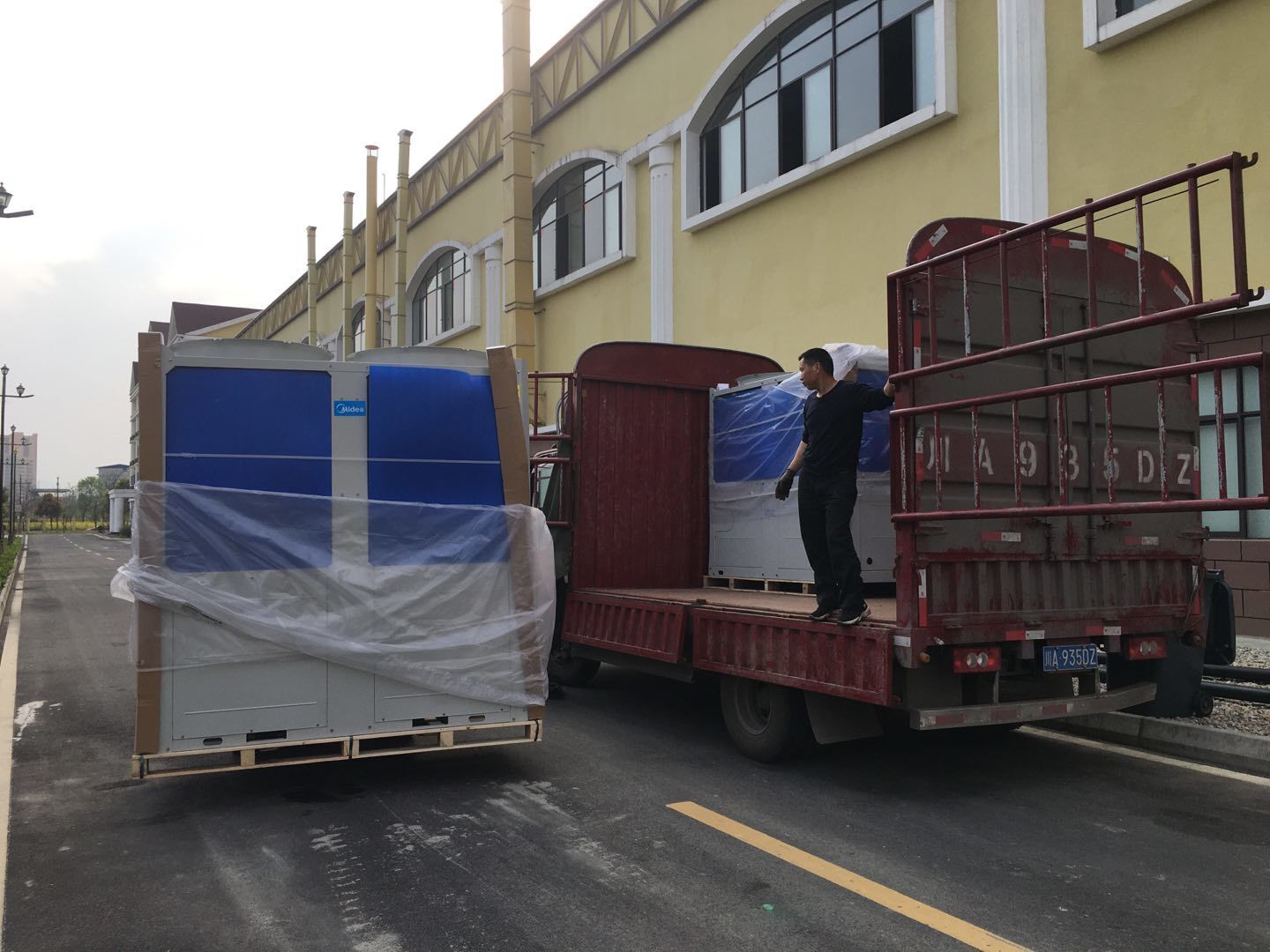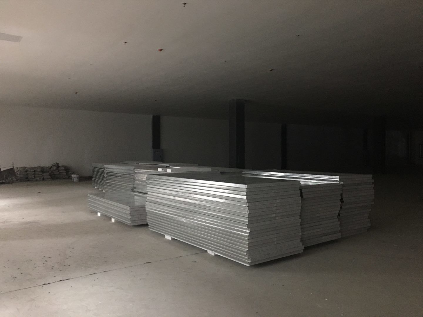 1:彩板吊頂全部門框扣料完成,門板構件同步制作中。收尾工作分區域暫進行配合地坪施工。2:空調班組~風管合縫完成,完成材料轉運至二樓,主機設備到場卸裝。3:水電班組-控制線配線完成80%,樓頂配管20%左右。