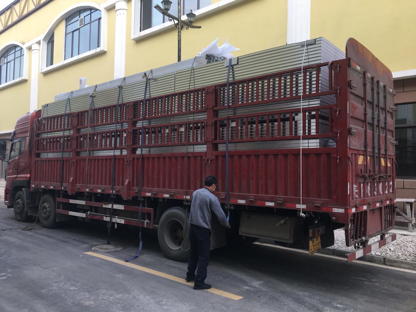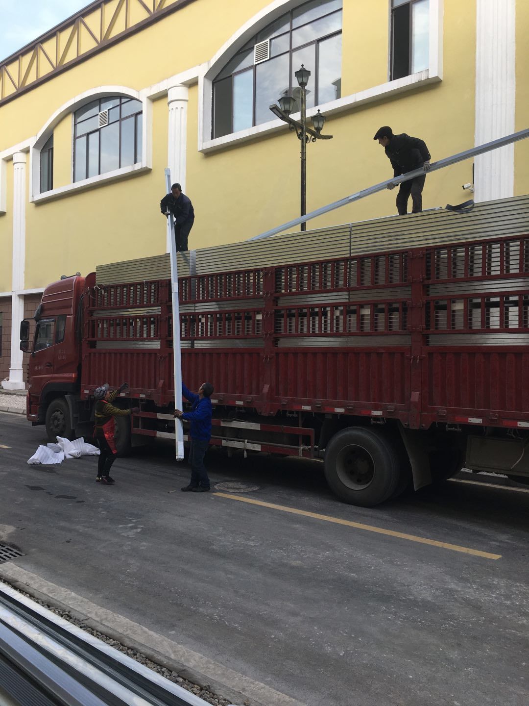 1:T型鋁掛設完成60%,明日開始封頂。2:絲桿掛設整體進度約為70%。3:隔墻通道門洞包飾處理進度較慢,已完成約50%.4:部分材料轉運至二樓,板材明天開始往二樓轉運。