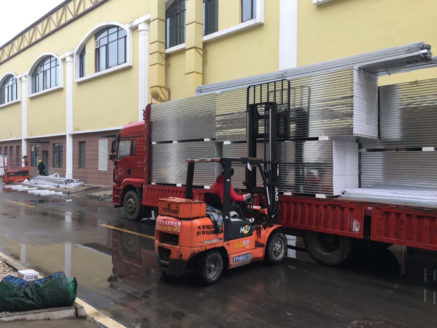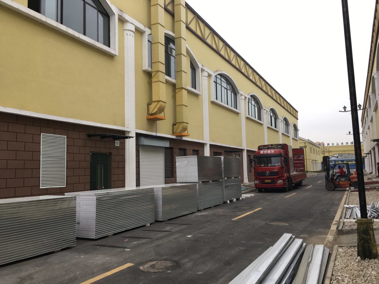 1、彩鋼人員到場,技術交底,安全培訓;2、材料轉運;3、地槽施工。