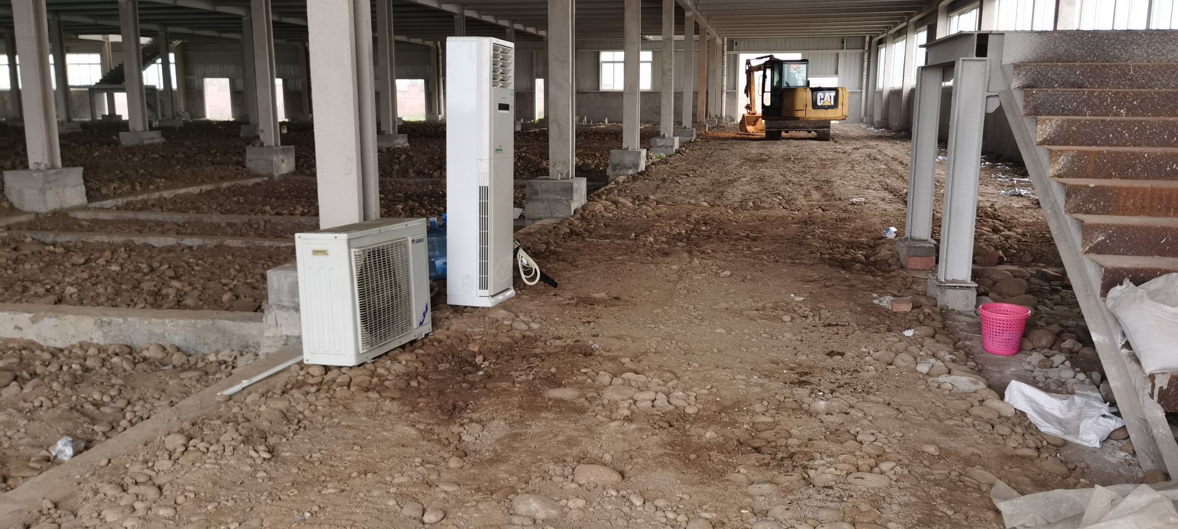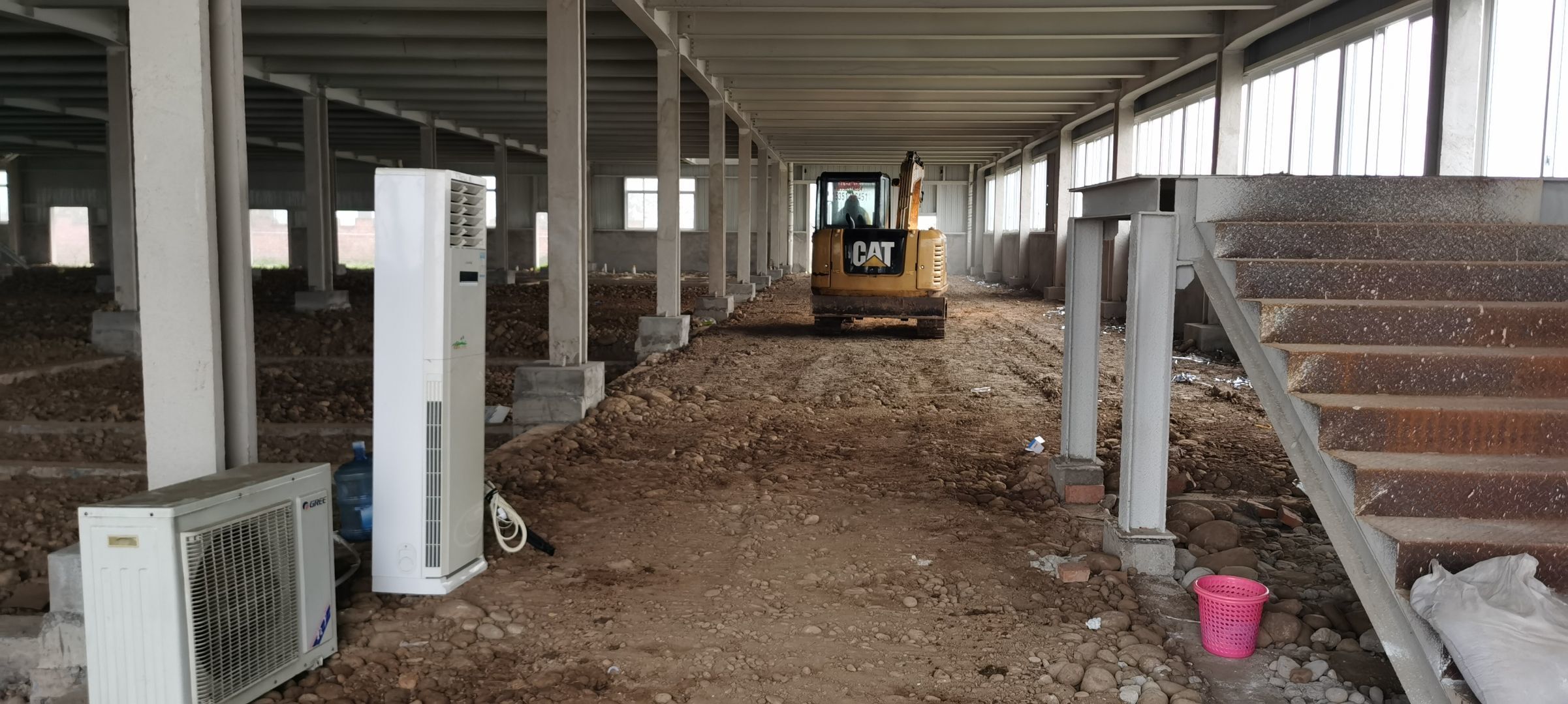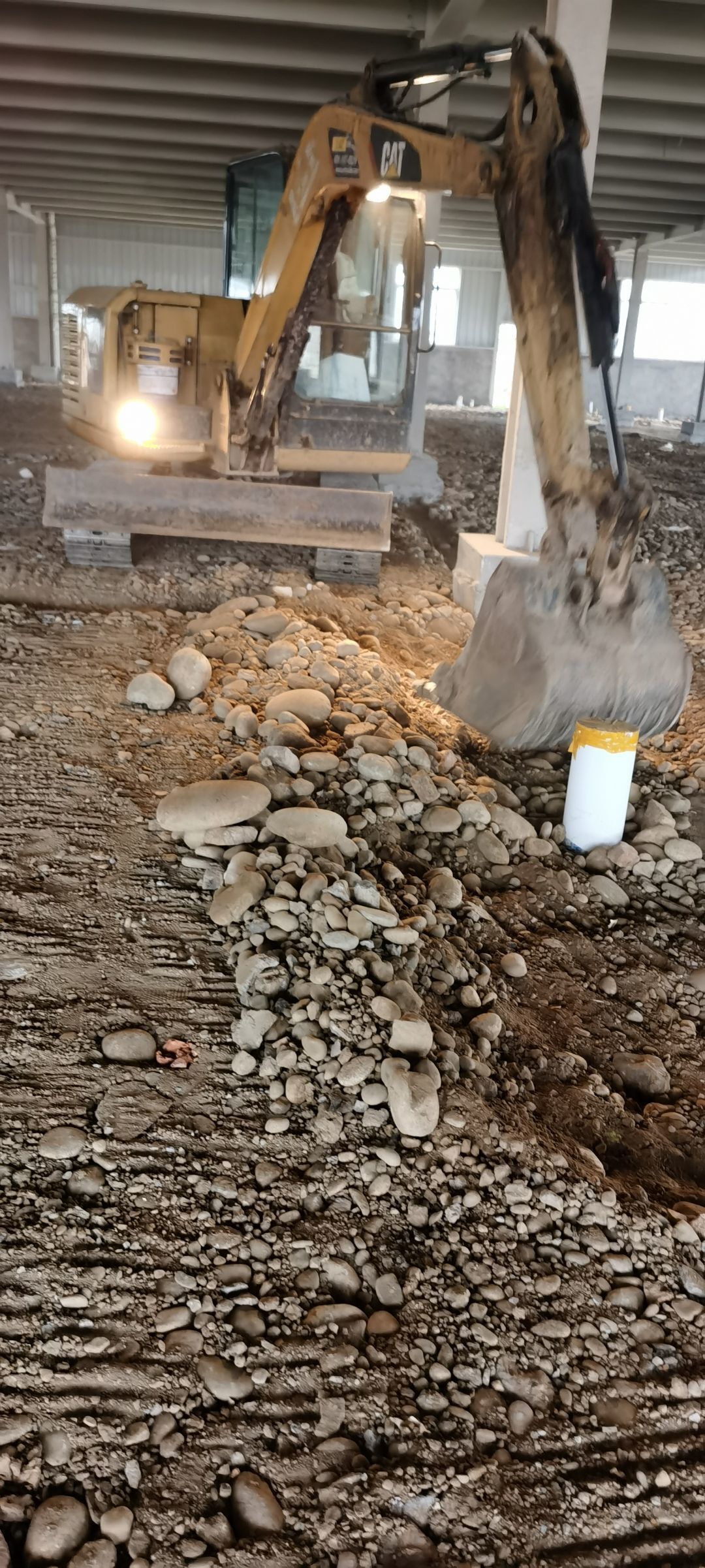 現(xiàn)場(chǎng)挖機(jī)壓地面,排水溝開挖