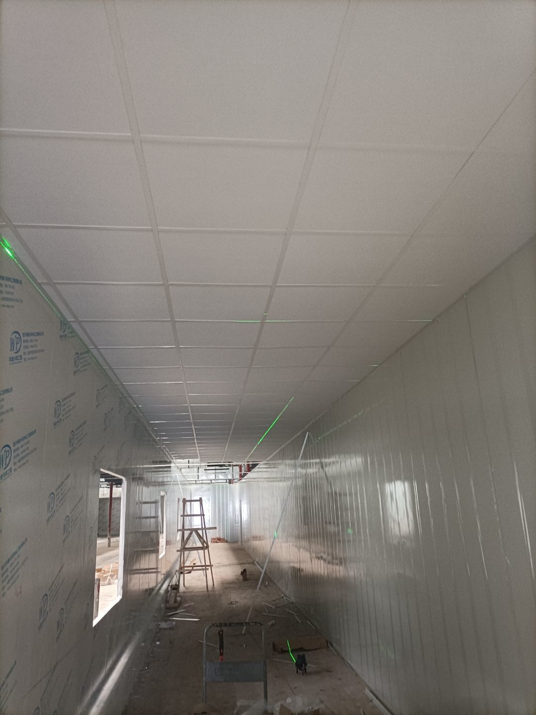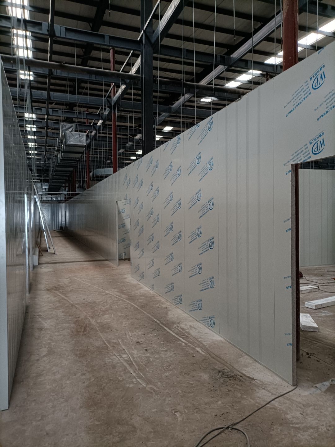 1、前處理間固化和拋光完成,滾揉間地面初磨完成,速凍庫旁邊過道門加大完成,水化霜儲水桶移位完成;2、燈具安裝完成95%,配管穿線完成80%。