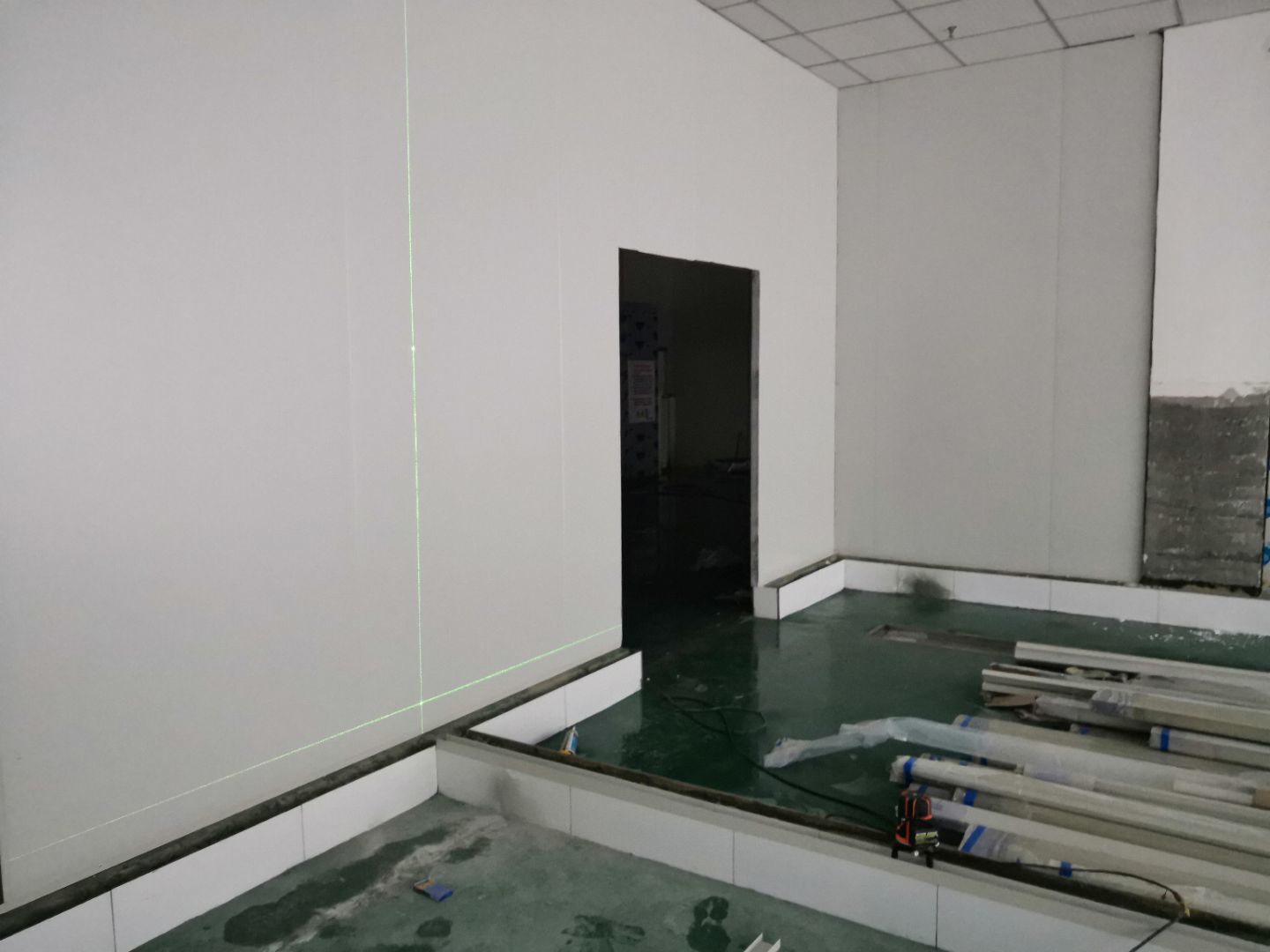 1:金剛砂固化地坪完成; 2:彩鋼墻板完成,收尾完成50%; 3:水電安裝完成90%; 4:腳踏池防水完成50%。