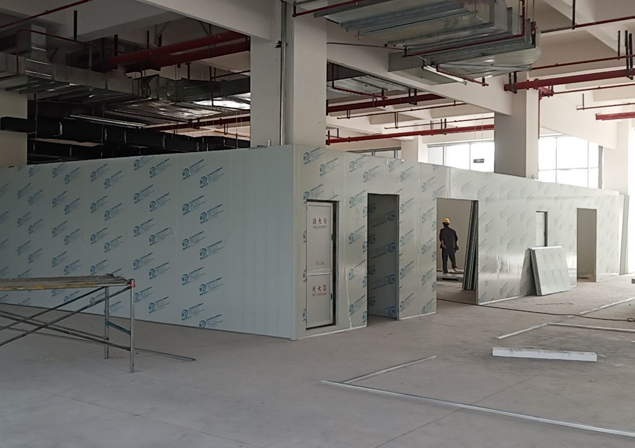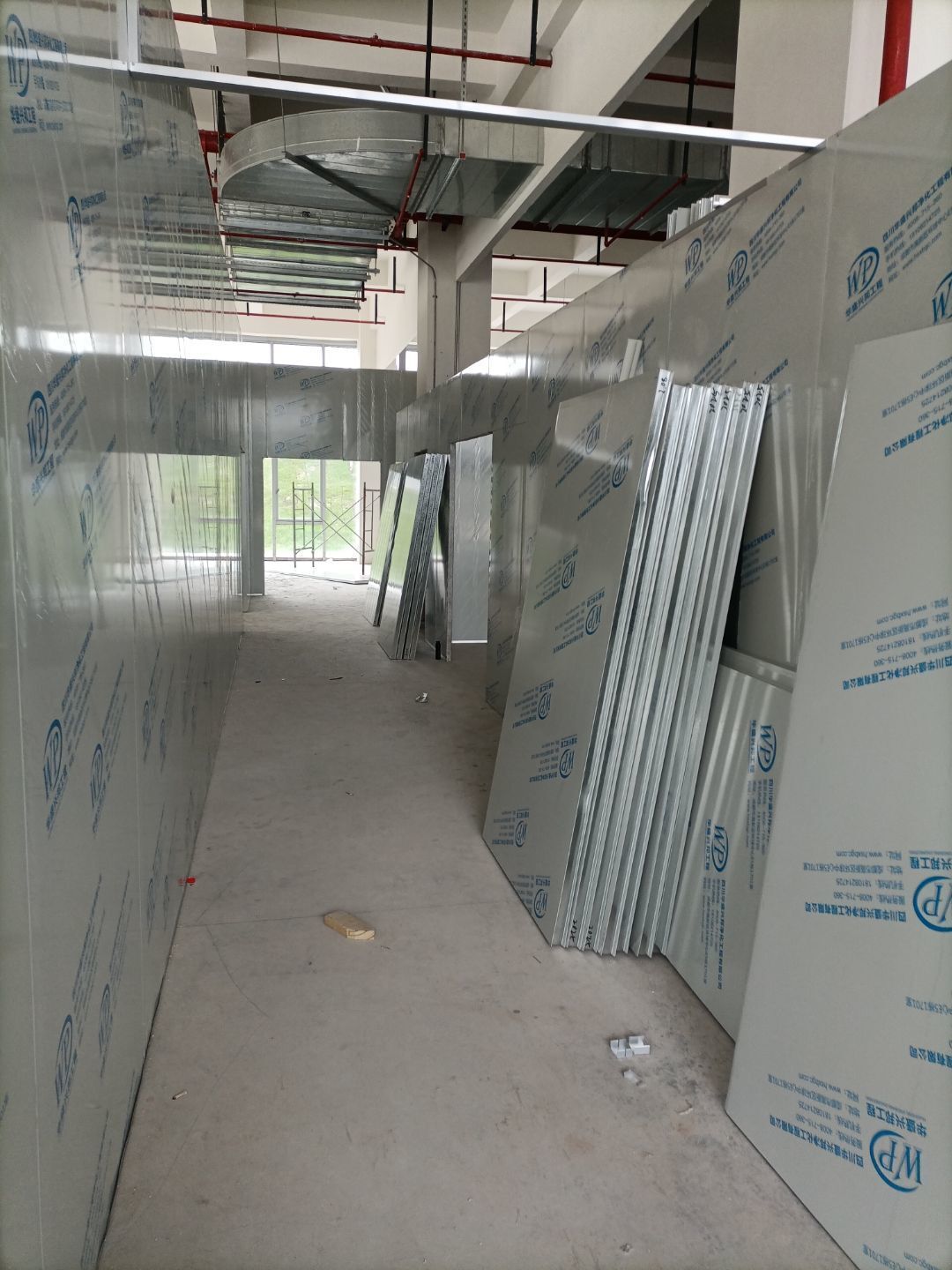 1:主風(fēng)管完成80%; 2:墻板完成30%。