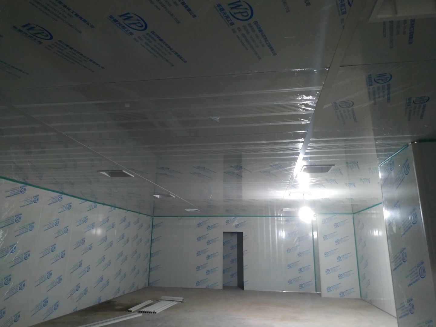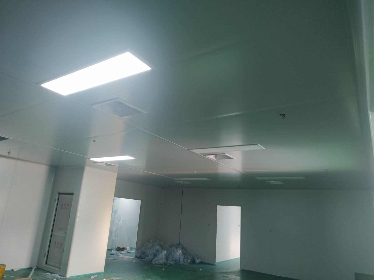 固化地坪區(qū)域上固化劑完成,開始細磨;凈化頂板安裝完成約80%,圓弧安裝完成約25%,門料預(yù)制完成90%。