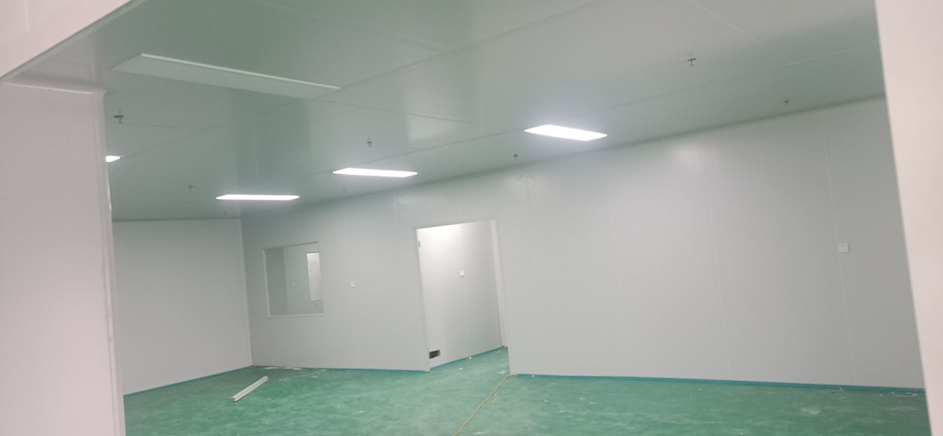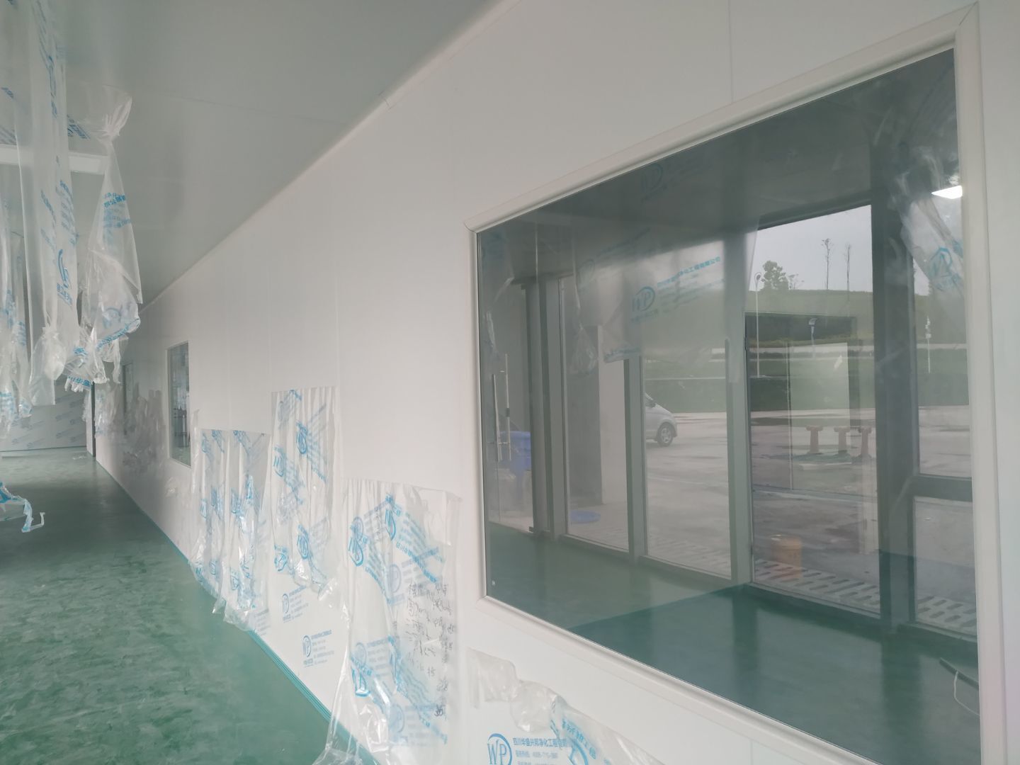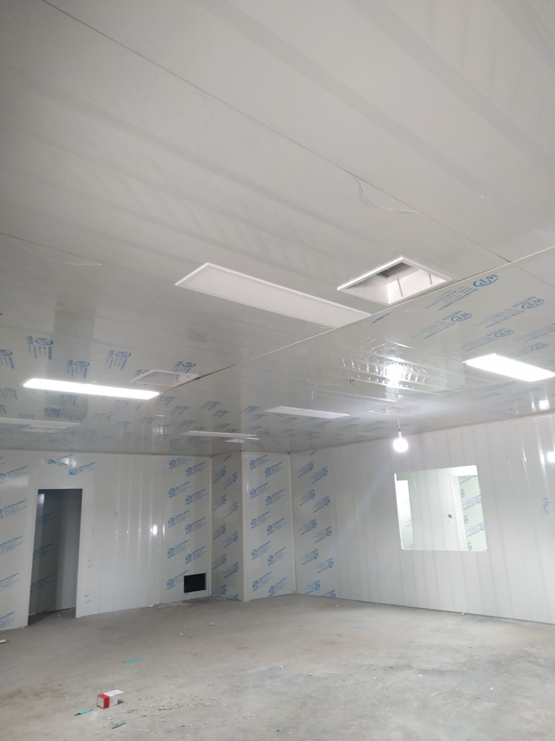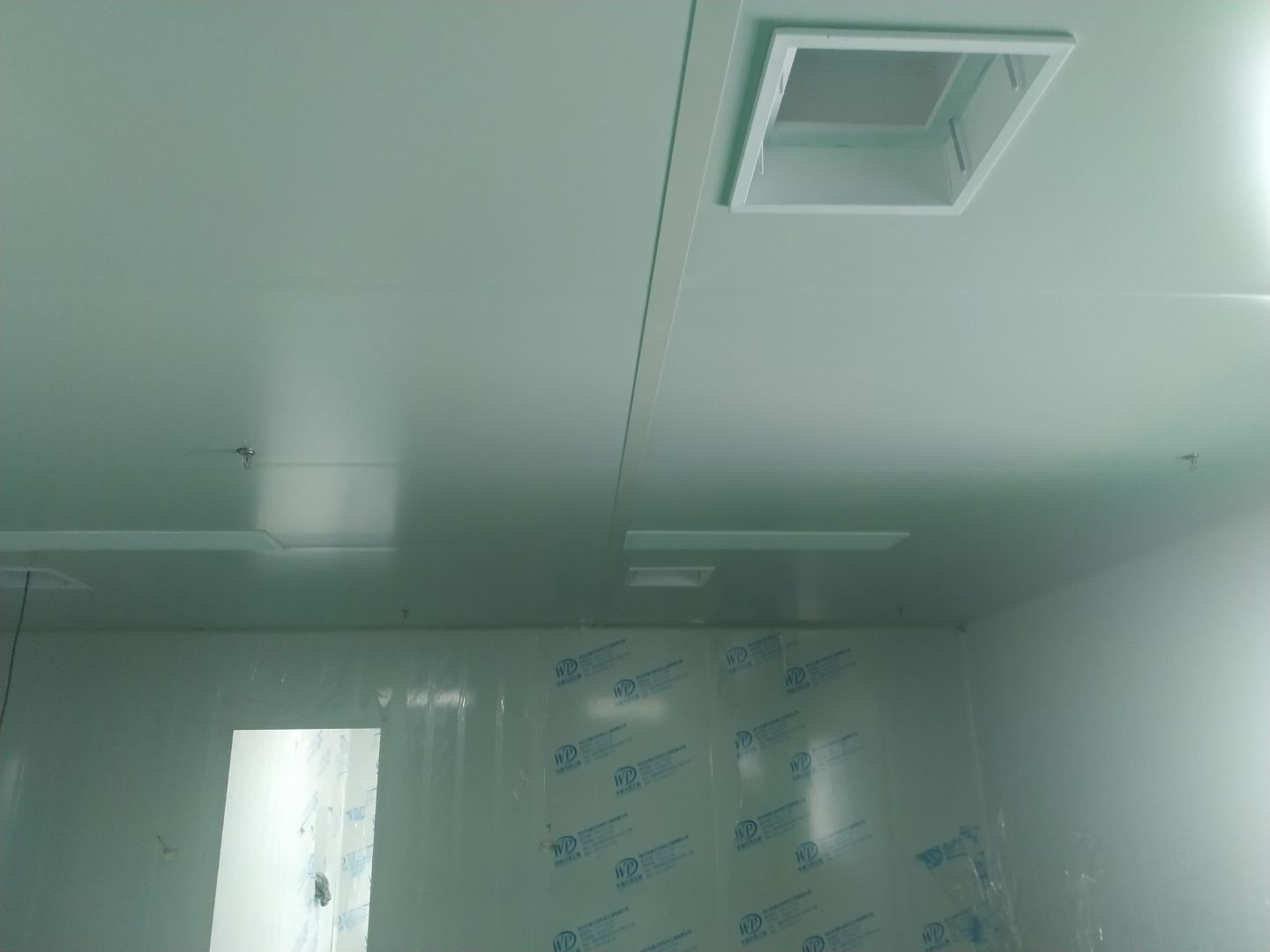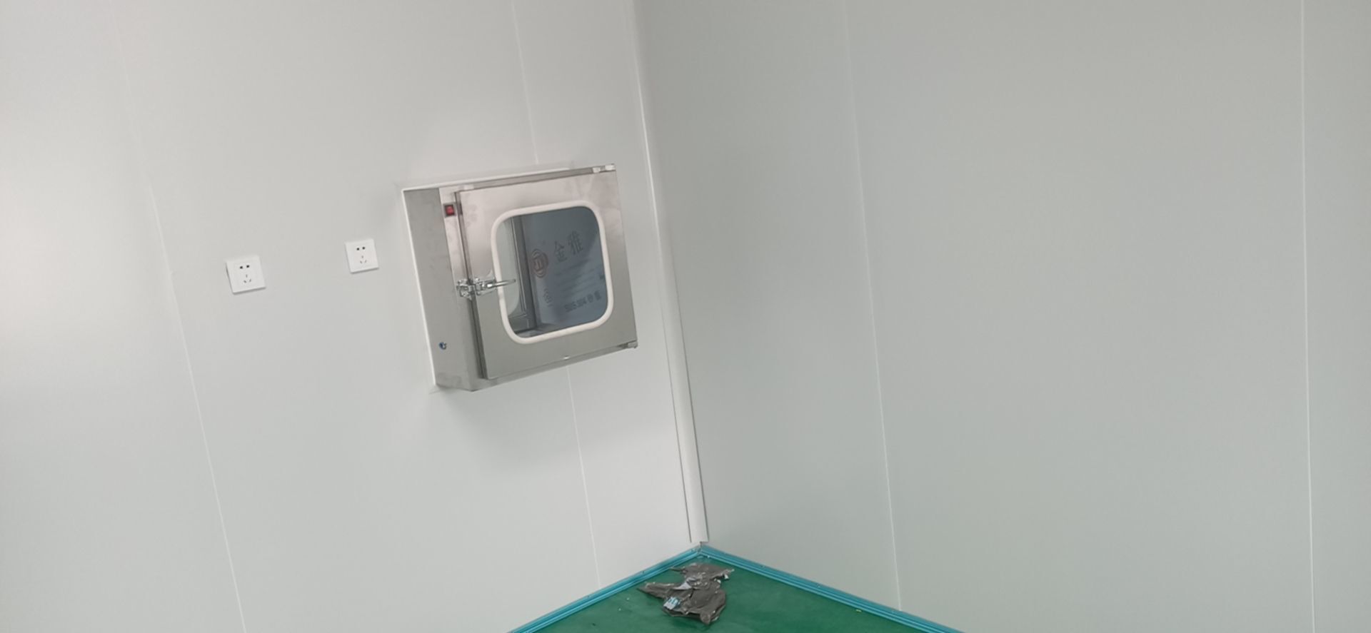 1:撕膜打膠完成約85%;2:傳遞窗安逸完成,空調(diào)機組組裝完成;3:開關(guān)插座面板安裝完成,觀察窗安裝完成;4:風(fēng)管支管安裝完成20%。