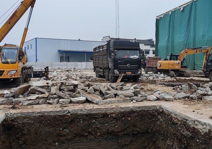地基施工,場地石塊清理。