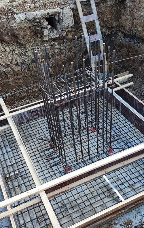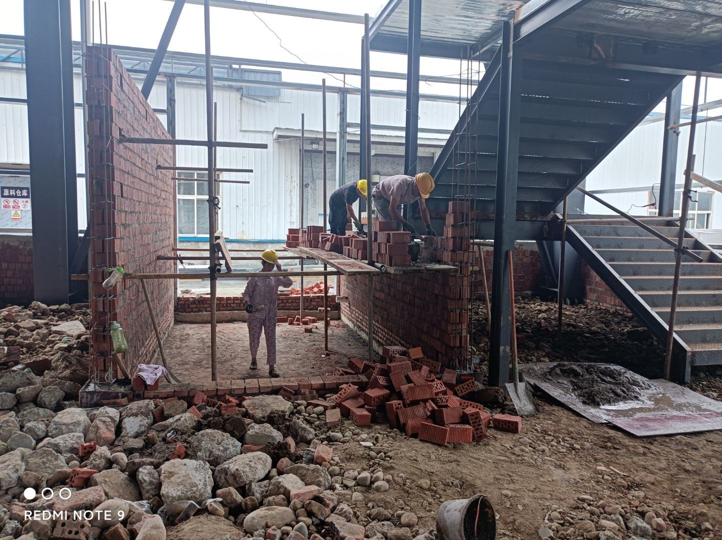 土建砌筑配電室外墻和打樓梯混凝土立柱。