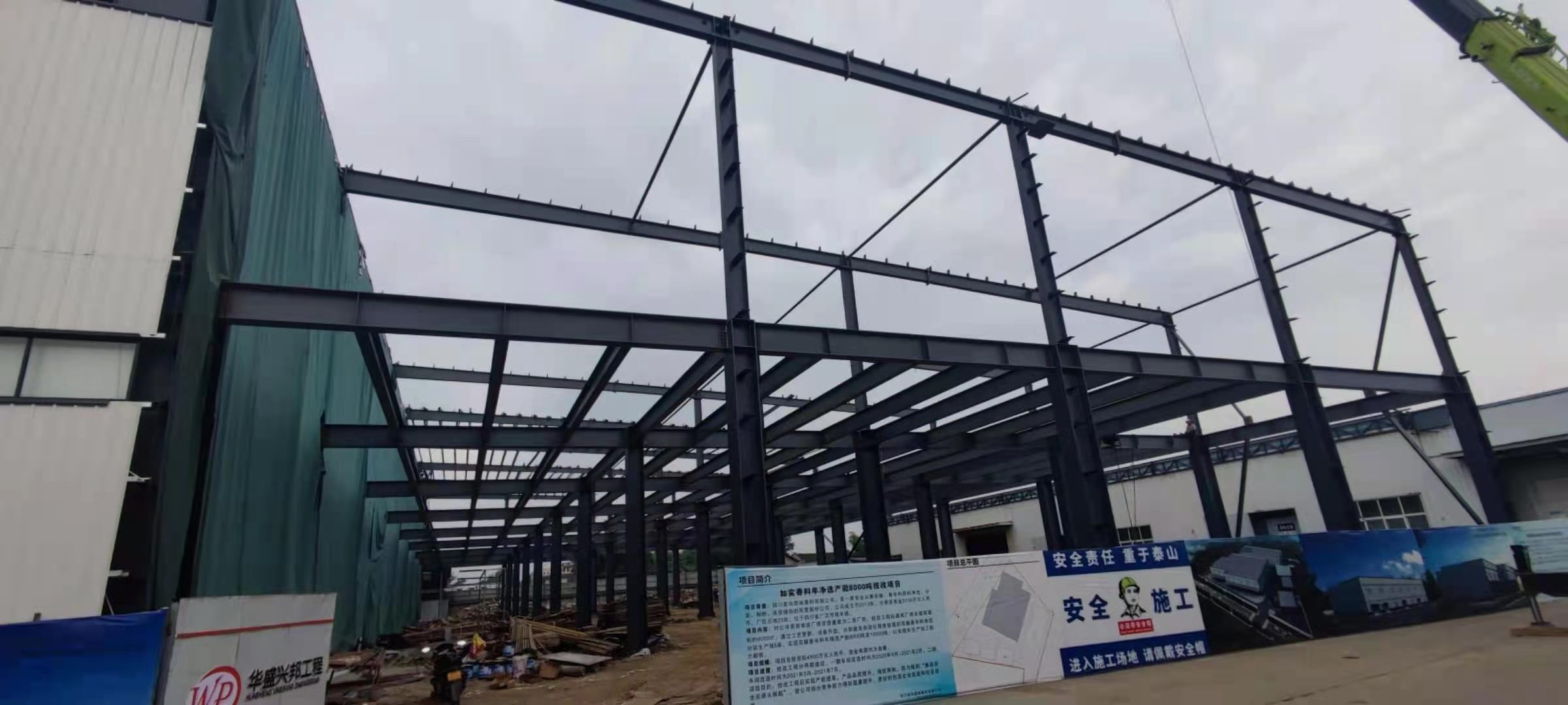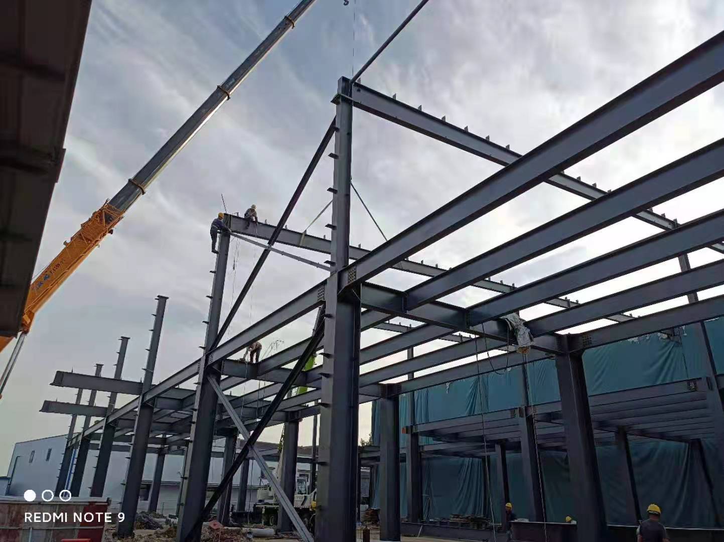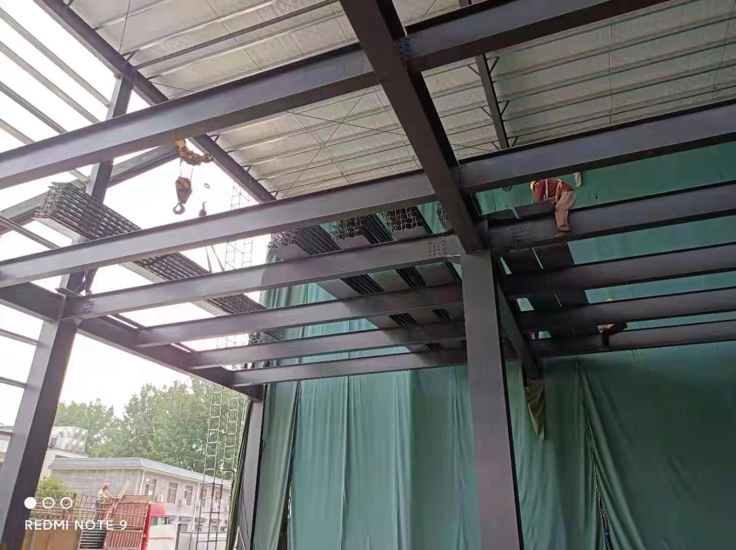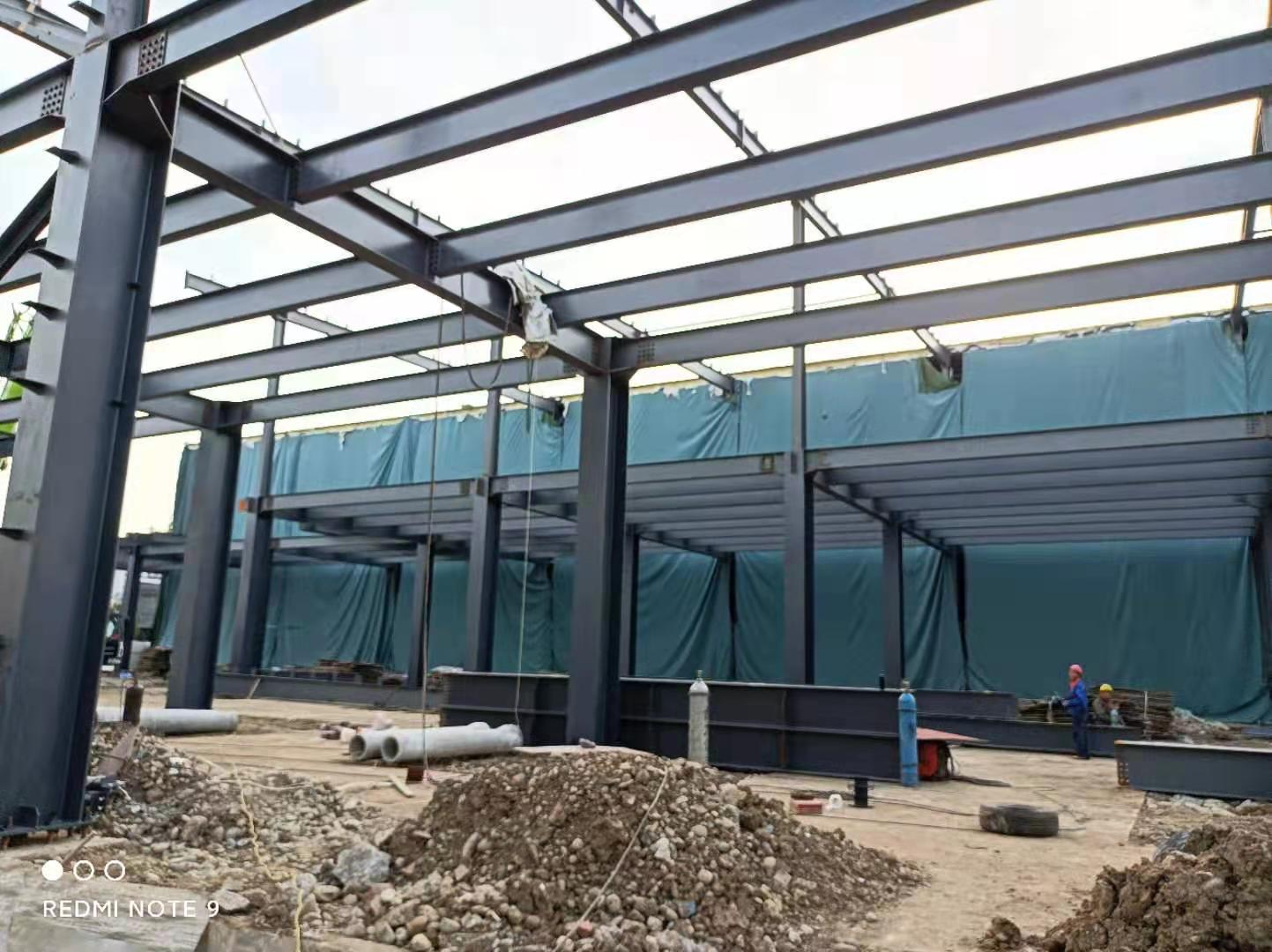 1、鋼結構主體框架完成90%;2、檁條安裝完成10%