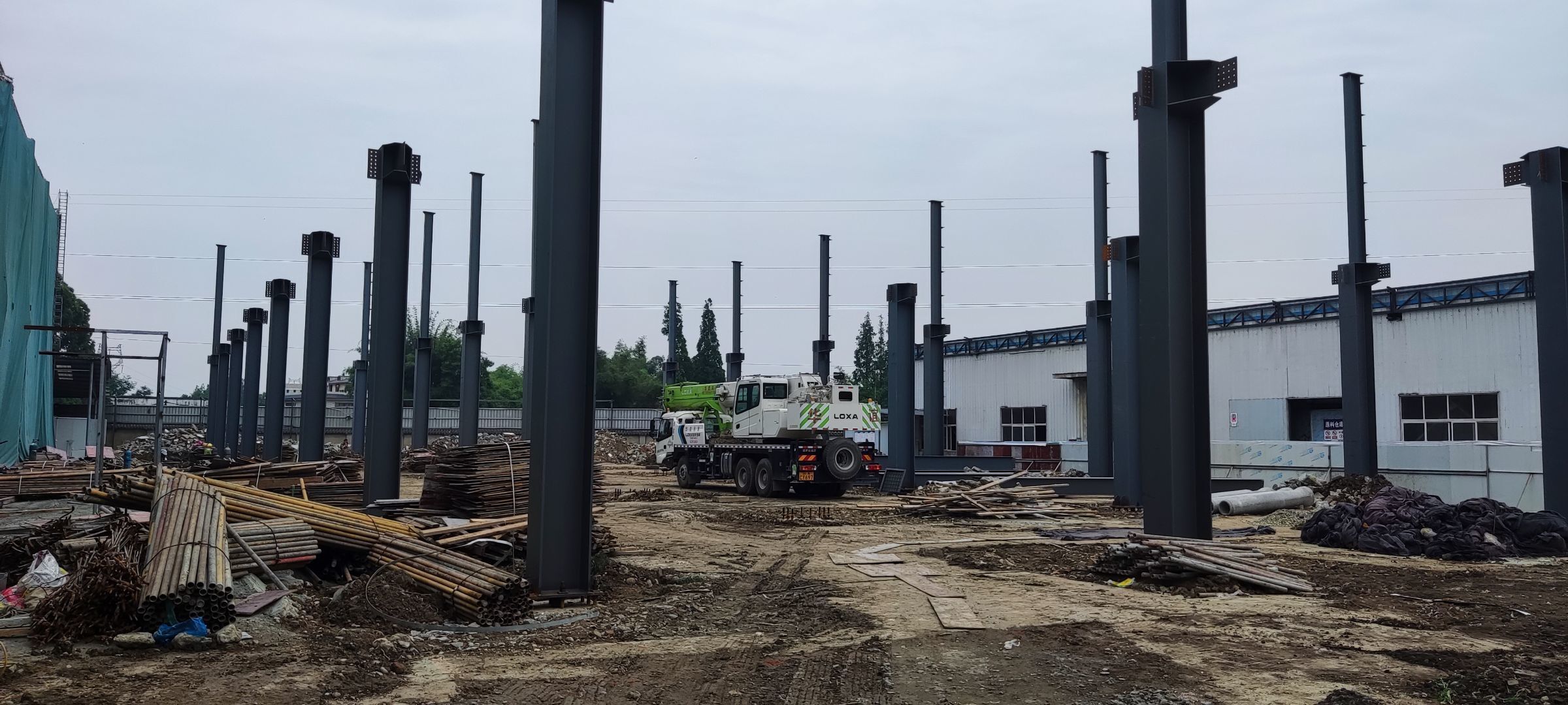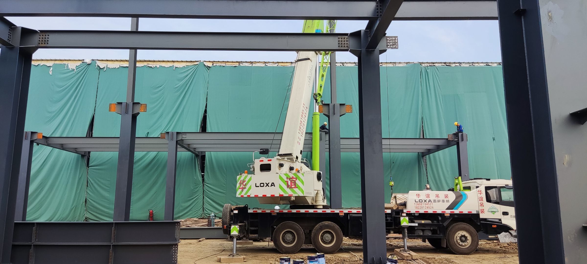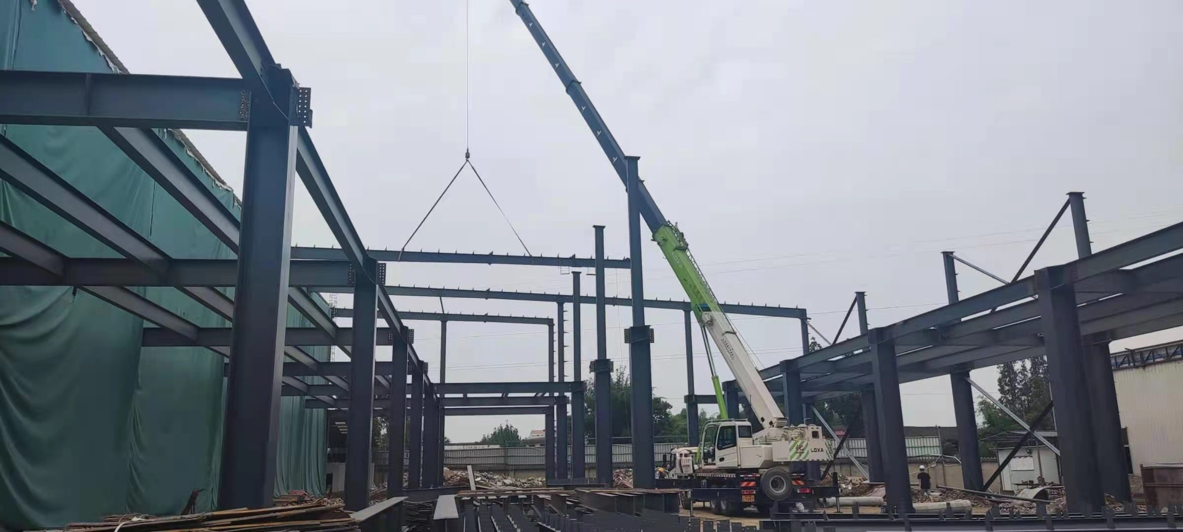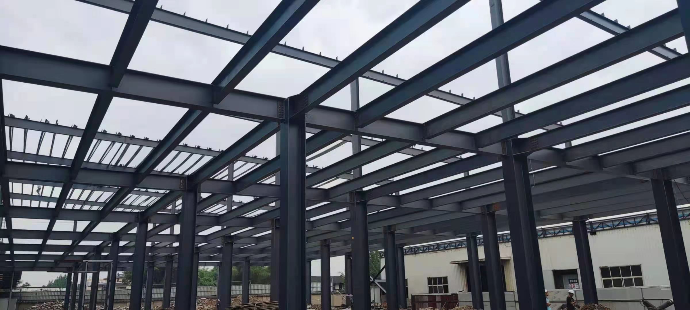 1、鋼結構主體框架完成90%;2、檁條安裝完成10%