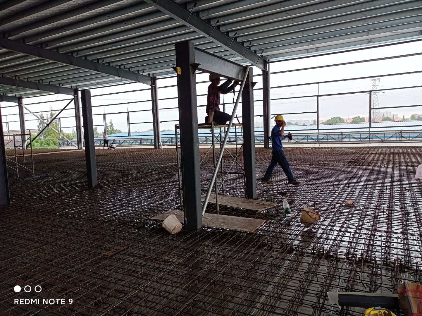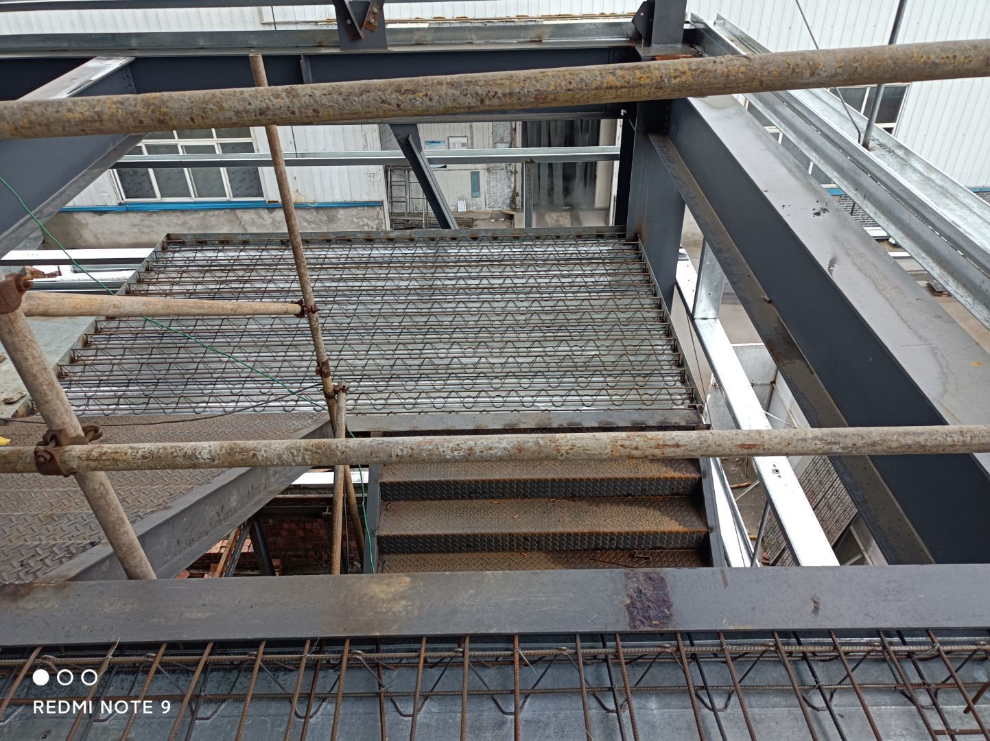1.一段樓板鋼筋綁扎完成80% 2.收邊件安裝完成15% 3.樓梯安裝完成40% 4.墻檁安裝完成75%