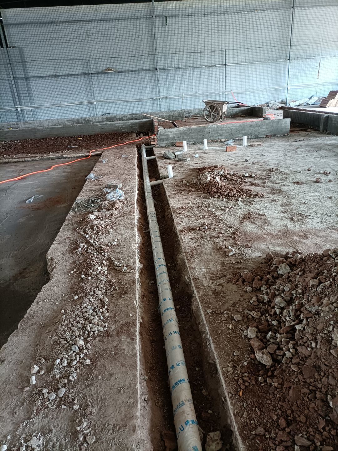 1.排水管安裝完成100%;2.排水溝回填100% 3.地面回填找平完成70%。