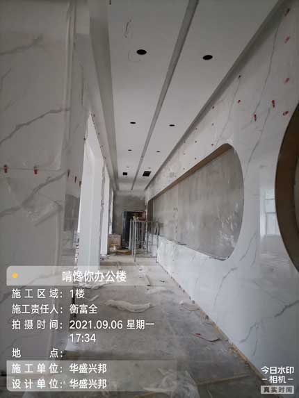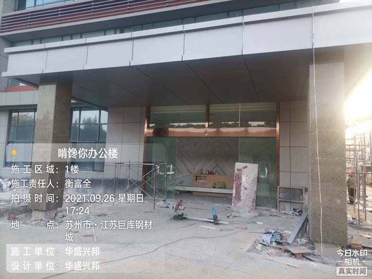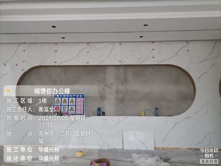 今日施工內容 1,不銹鋼安裝 2,墻布安裝 3,衛生清理 4,衣柜安裝 5,燈具,開關插座收口 6,漆工修補 7,玻璃清洗