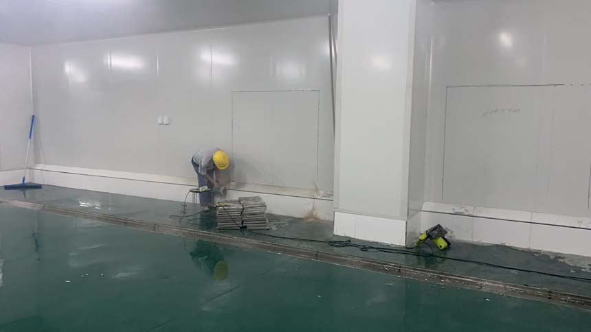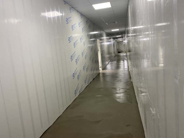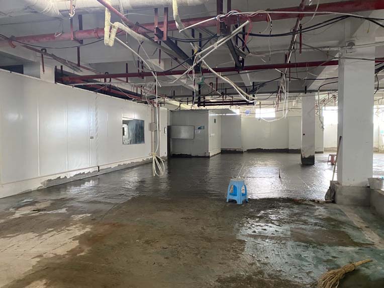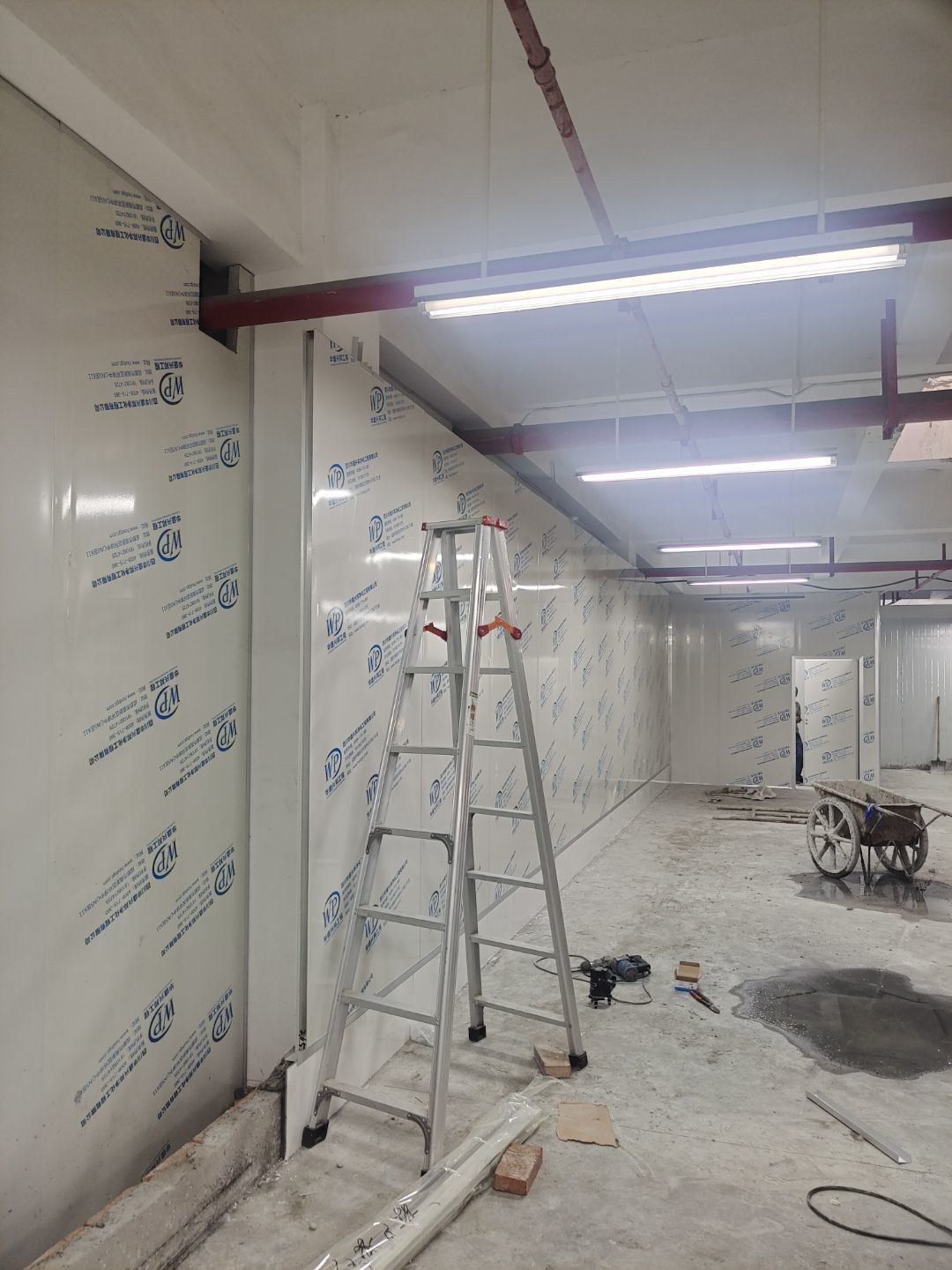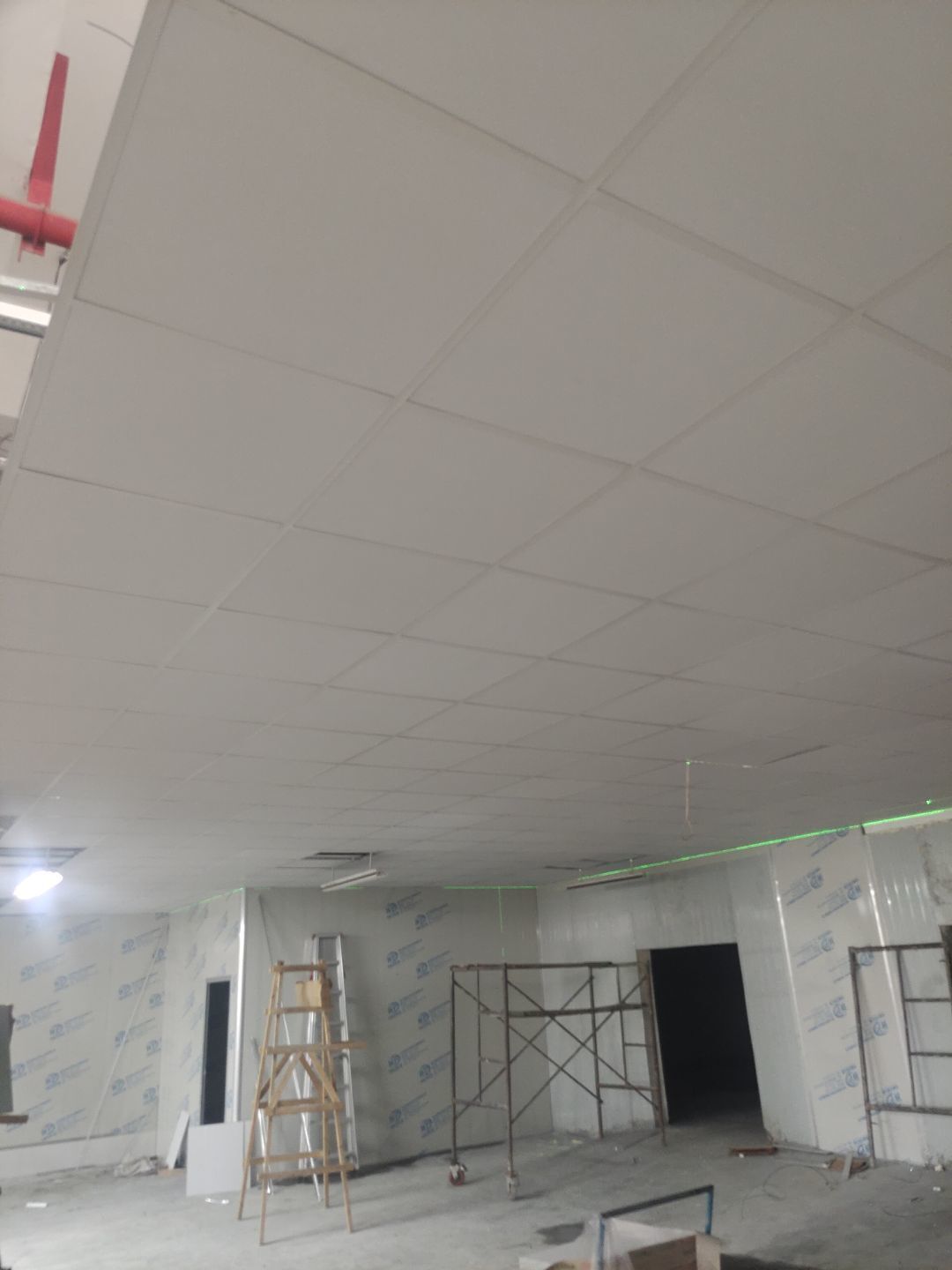 1、辦公司隔墻安裝完成,開門洞及門制作安裝完成 2、外包間墻面板安裝完成90%,剩余部分甲方要求設(shè)備搬運(yùn)后安裝