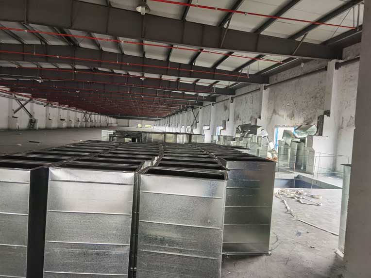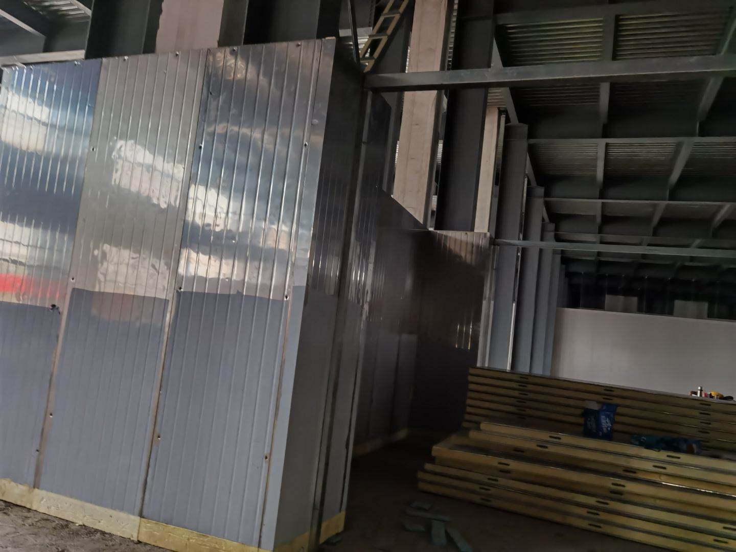 1,一樓地槽 彩板 吊筋安裝 2,一樓鋼構頂刷漆 3,一層鋼構平臺施工 4,西邊室外雨水管安裝 5,一樓凍庫門體安裝 6,一樓空調風管吊裝 7,二樓空調柜機吊裝 8,電梯施工
