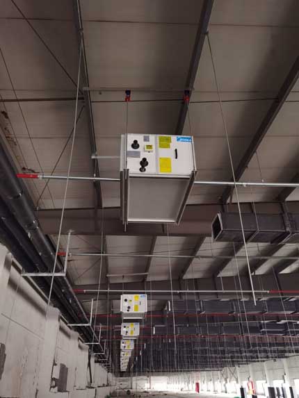 1,一樓彩板吊筋安裝 2,一樓鋼構頂刷漆 3,一層鋼構平臺焊接施工 4,一樓凍庫門體安裝 5,一樓空調新風管吊裝 6,門衛室墻體砌筑 7,電梯施工
