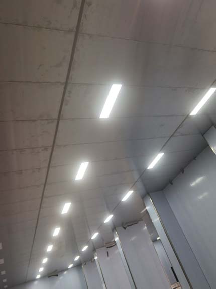 今日施工內容 1,室外混凝土澆筑 2, 二層監控安裝布線 3,室內工藝水開始施工 4,工藝設備布線放線 5,樓梯彩板圓弧收尾 6,電纜敷設 配電箱壓頭 7,一二樓煙感安裝 8,二樓鋁扣板邊角鋁施工 9,一層彩板收尾 打膠 10,室外地面污水管清挖