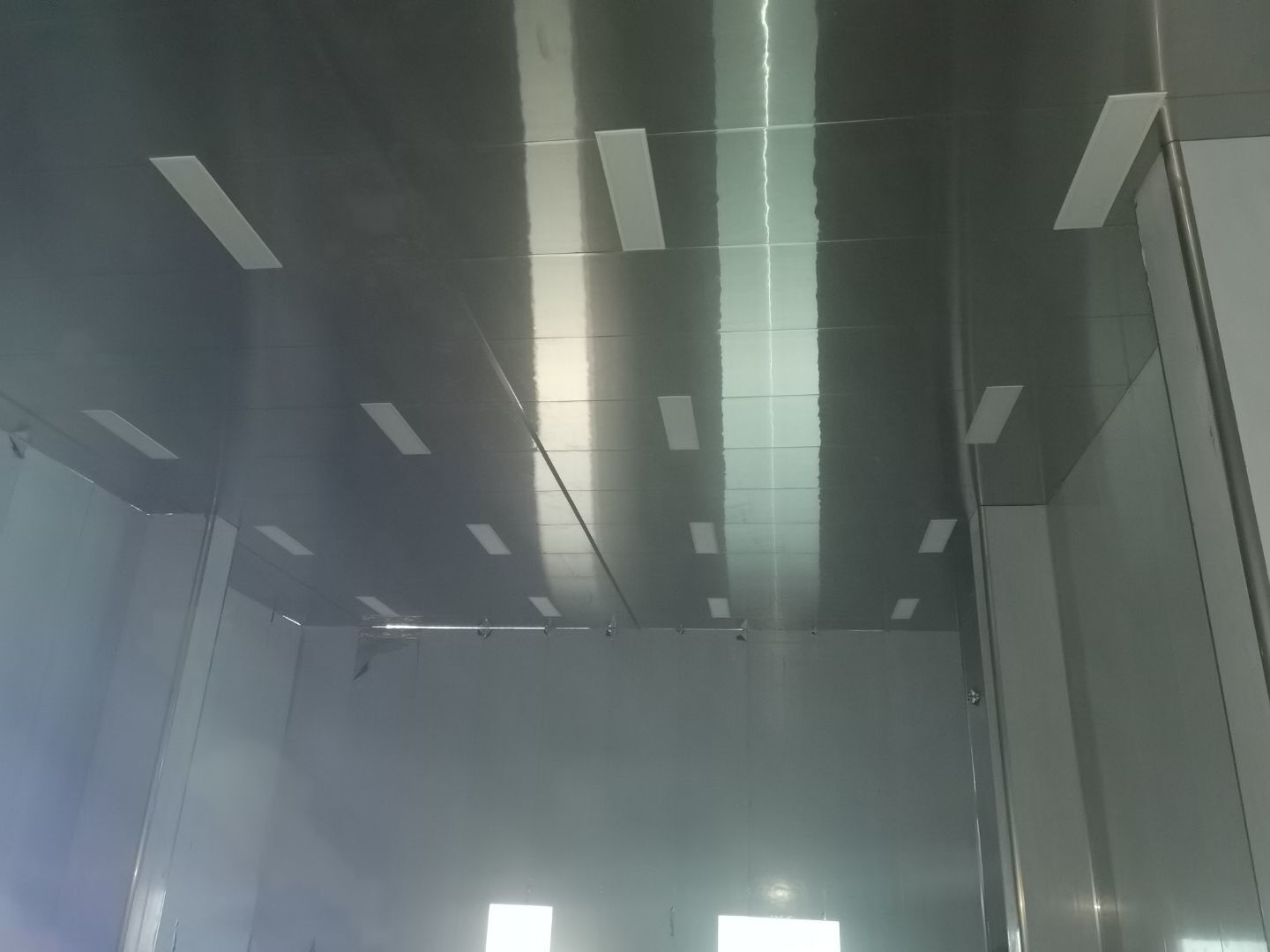 今日施工內容 1,彩板拍圓弧 打膠 2, 二層鋁扣板安裝 3,二層風管軟接 4,一層地坪施工 5,凍庫冷媒管安裝 6,二層墻板安裝 7,一層消防煙感安裝 8,蒸汽管道施工 9,門體安裝 今日材料進場 彩板 消防主水管 工藝設備