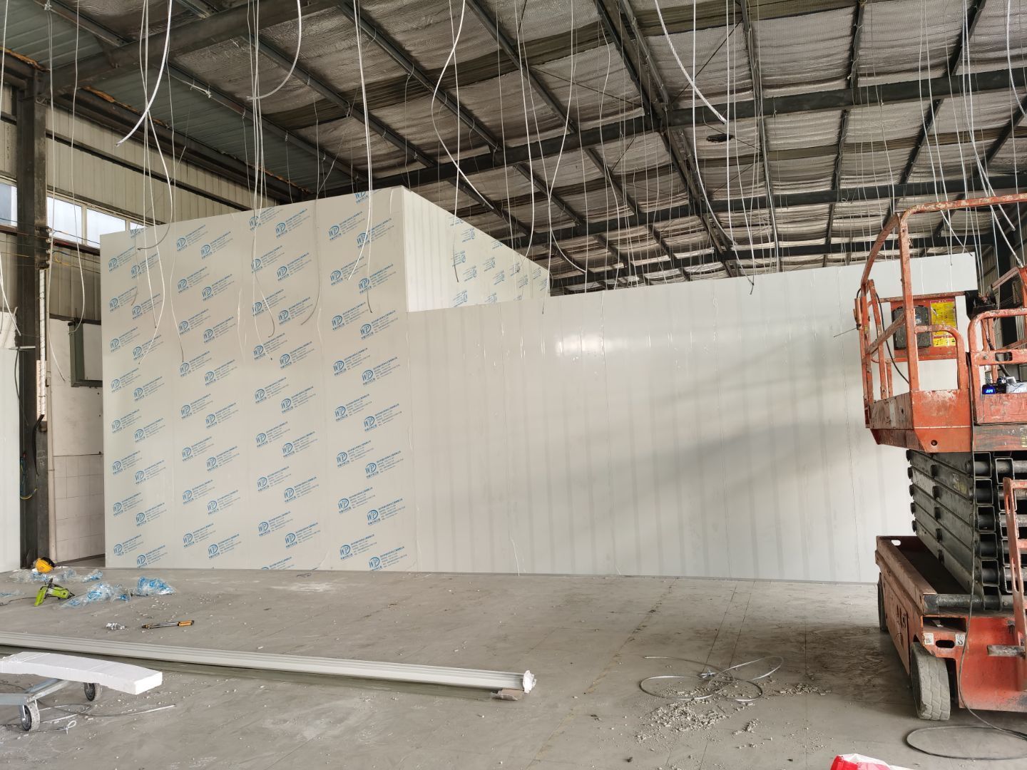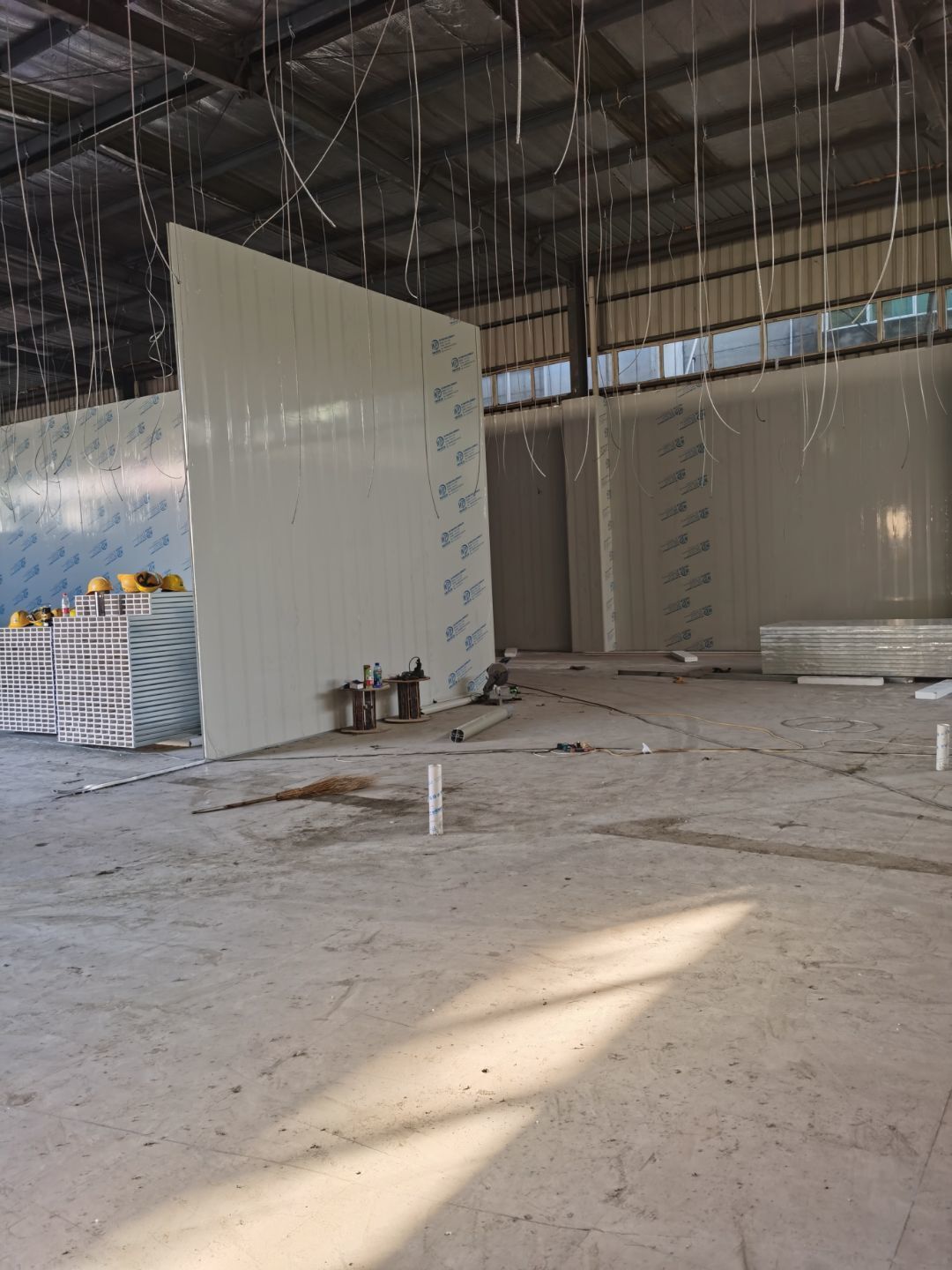 1、排水溝及凍庫切割完成100% 2、 破碎完成100% 3、 吊頂鋼繩下料完成100% 4、 排水溝接管完成100% 5. 排水溝回填并發(fā)水完成100% 6. 彩鋼墻板完成20% 7. 土建活完成30% 8, C型鋼加固完成20%