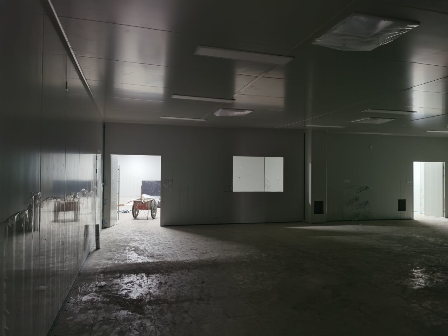 1,彩鋼墻板立板除預(yù)留設(shè)備外完成100% 2,彩鋼板吊頂除預(yù)留外,完成95% 3,三防板吊頂完成100% 4,水電安裝完成70% 5,彩鋼板收尾工作完成60% 6,聚氨酯超耐磨地坪漆,完成90%