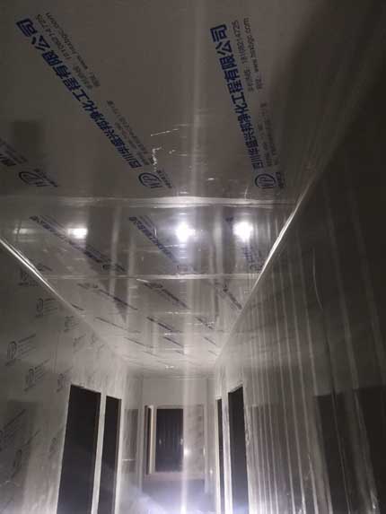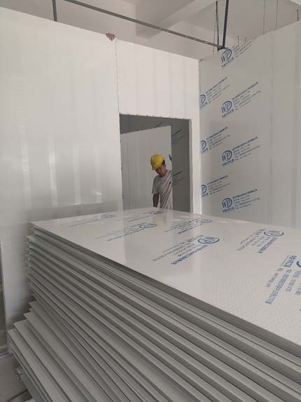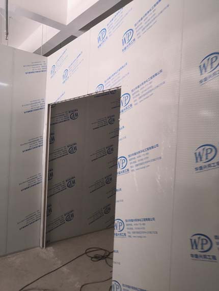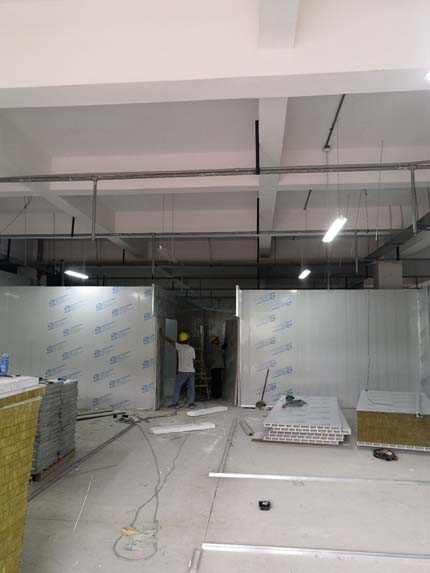 1、板縫,圓弧打膠完成90% 2、觀察窗開洞完成100% 3、電工插座開洞完成100%