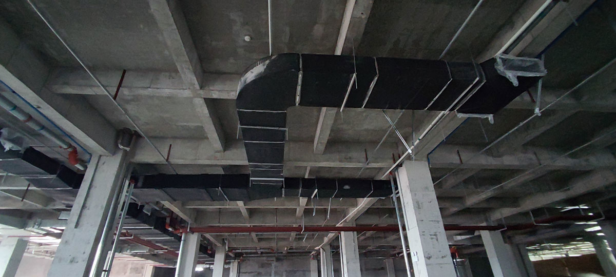 1,風管主管安裝及保溫完成80%; 2,鋼結構構件預制完成70%,安裝完成30%; 3,彩鋼板墻板完成3%,頂板吊筋安裝完成10%