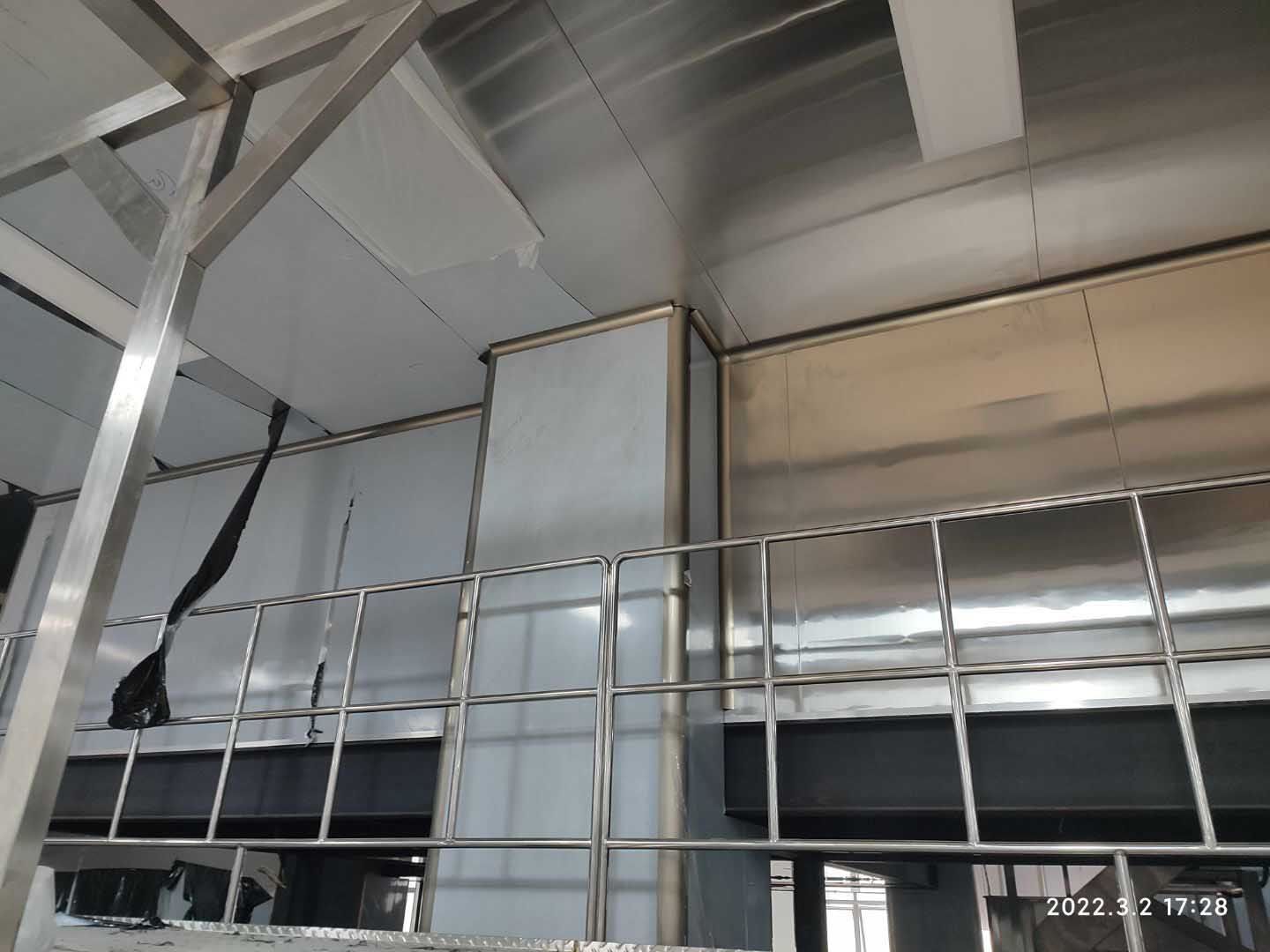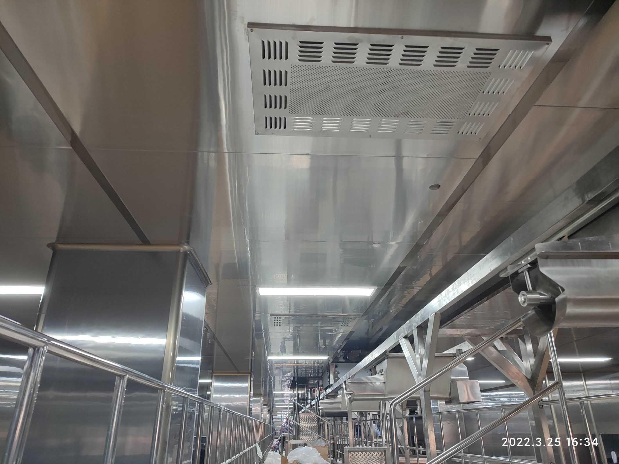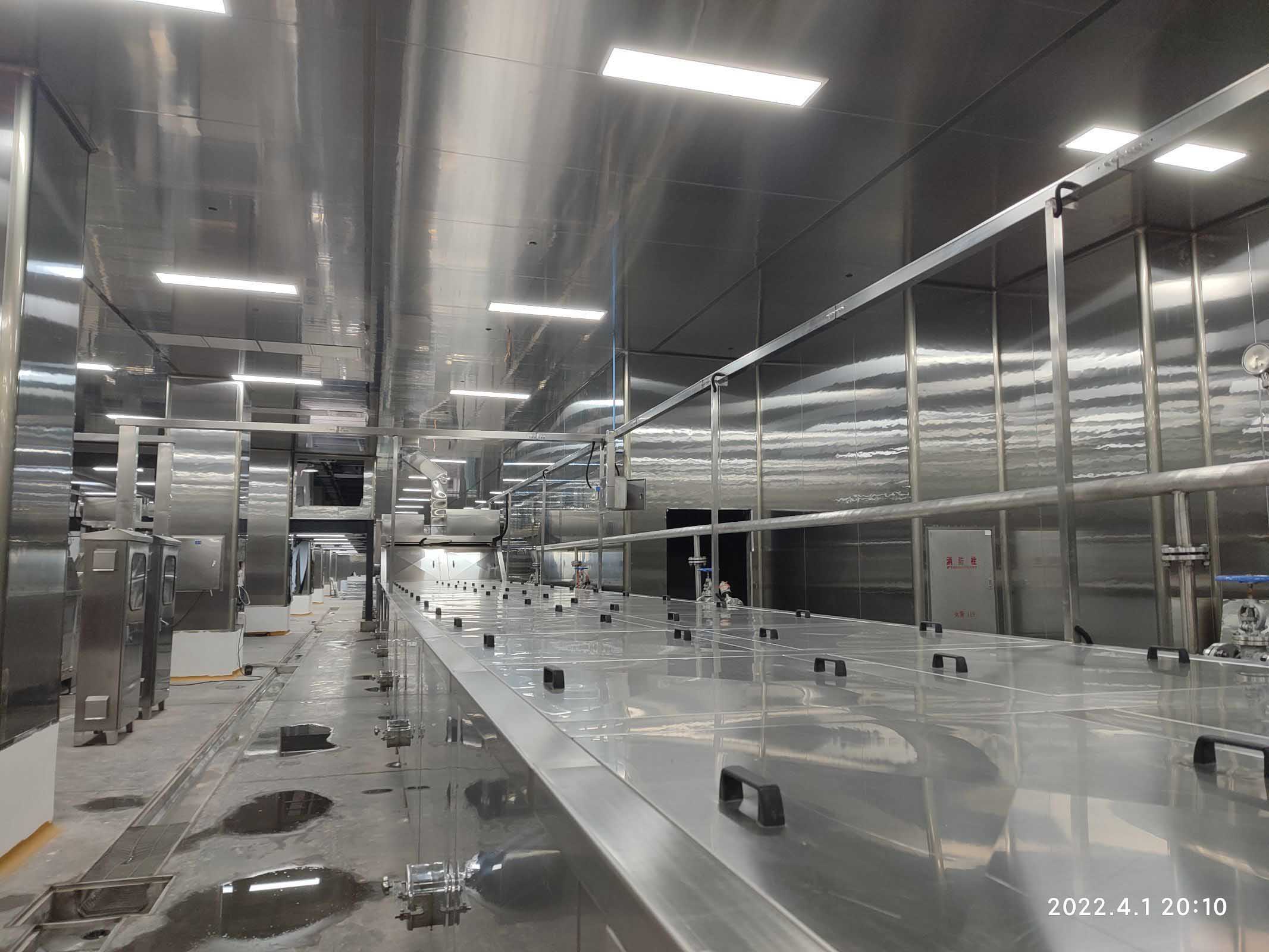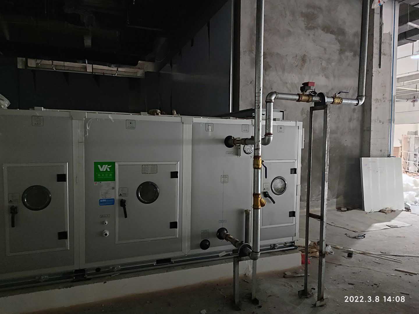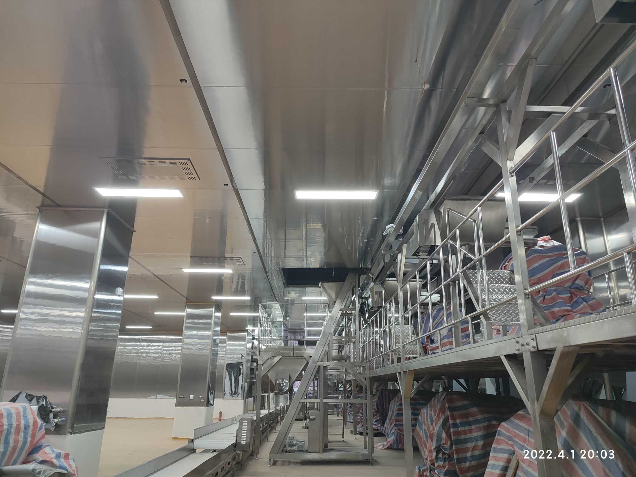 1,彩鋼板工程整體完成90%; 2,照明完成92%,插座完成90%; 3,空調末端風管安裝完成90%,高效濾芯及擴散孔板完成80%,1,2號機組空吹完成。