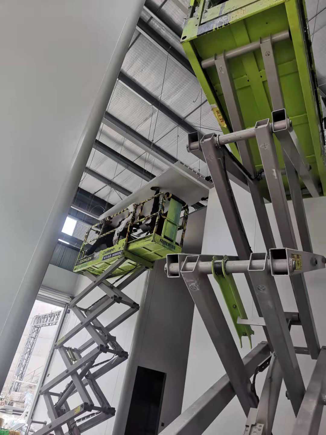 一樓廁所地磚安裝完成50%,一樓辦公室地磚安裝完成20%;一樓生產區域墻板安裝完成65%,二樓吊裝口窗戶拆除完成。