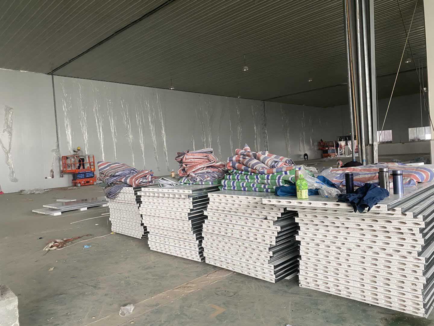 1、三車間環氧地坪超耐磨面層施工完成、二車間增加環氧地坪工程量打磨和底涂施工; 2、增項彩鋼隔墻板施工、門安裝; 3、風機電源接駁、排氣扇波紋管更換安裝; 4、土建擋水墻、門洞貼磚勾縫