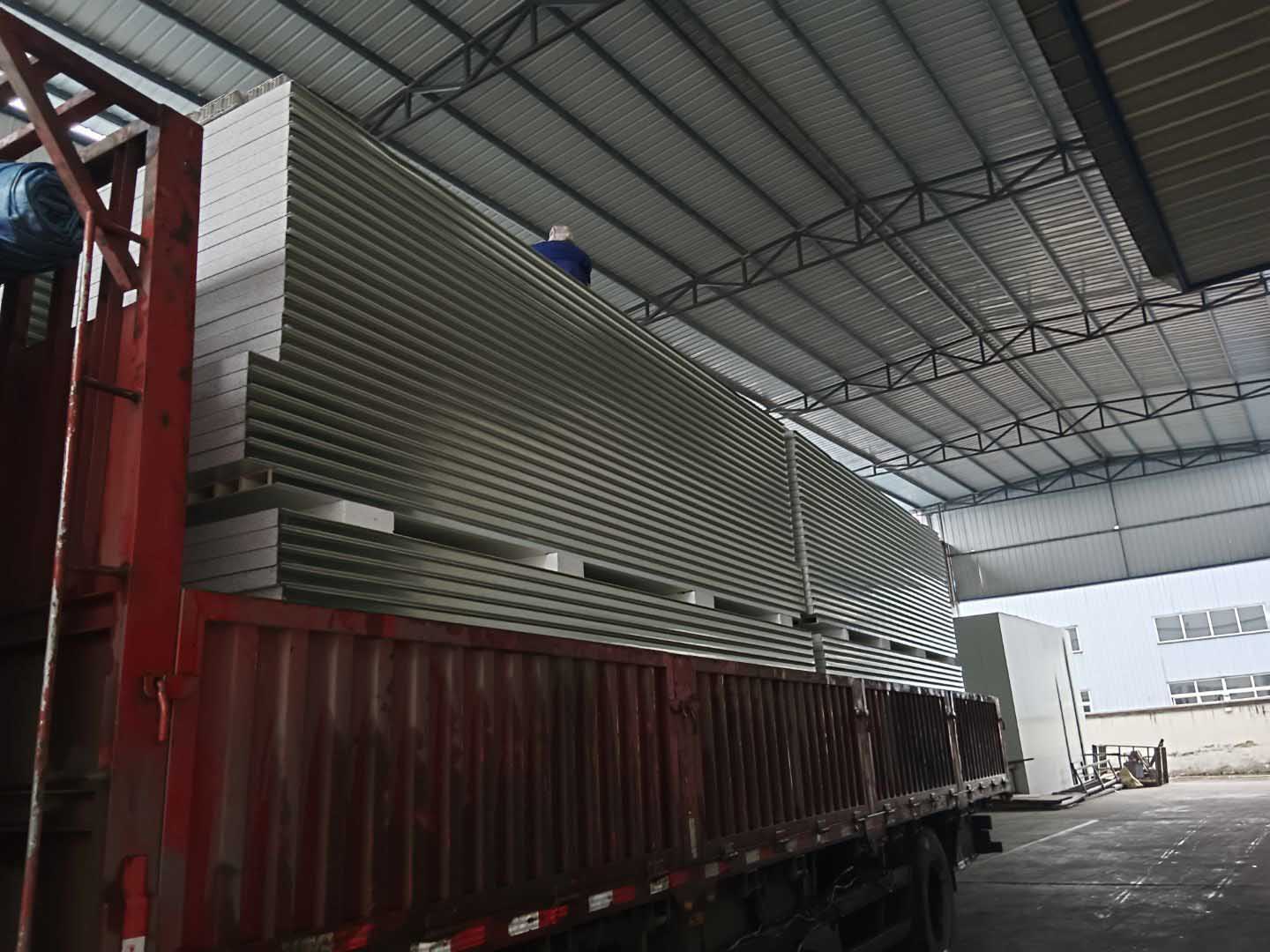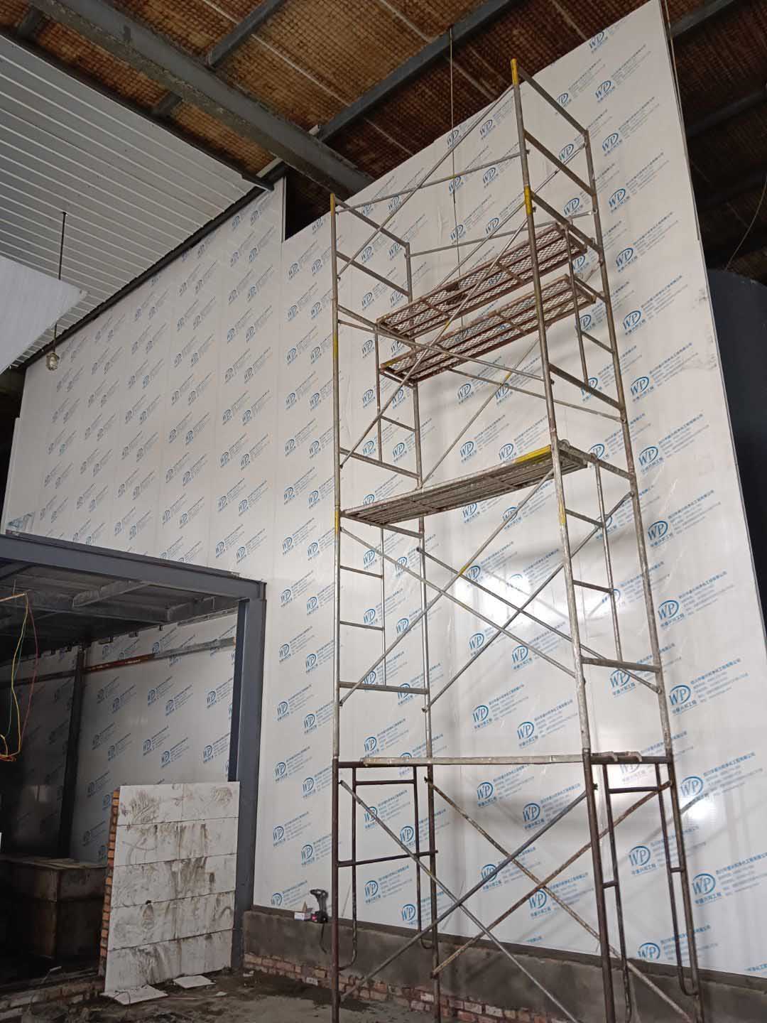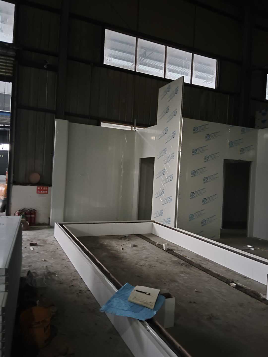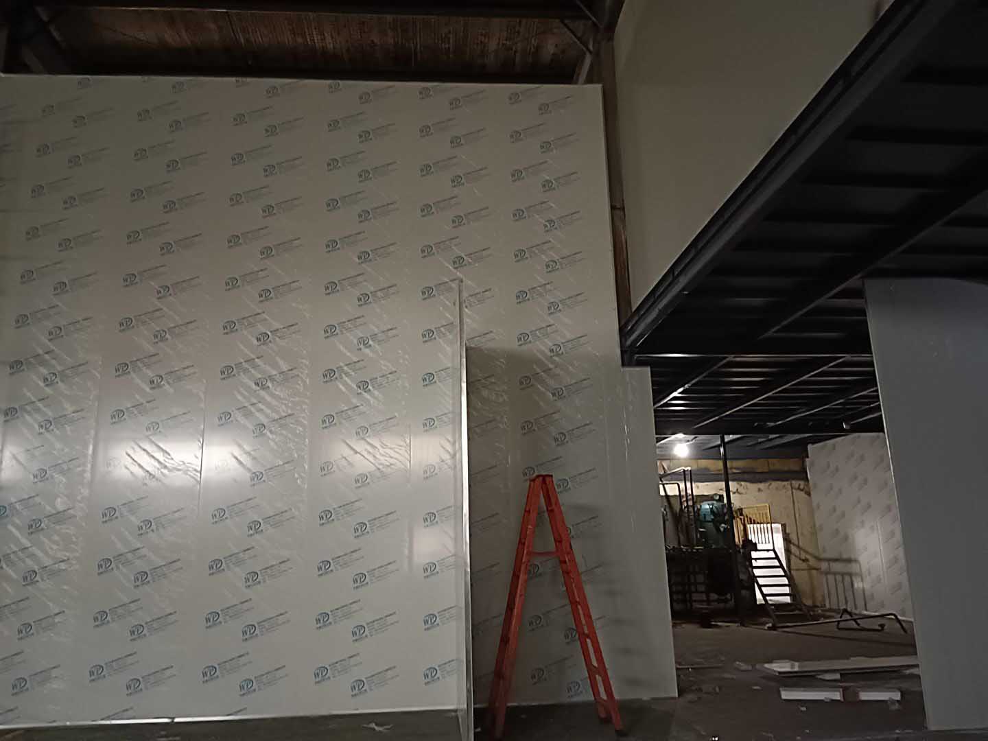彩鋼板隔墻完成70%,調(diào)配間鋼管架搭設(shè)完成