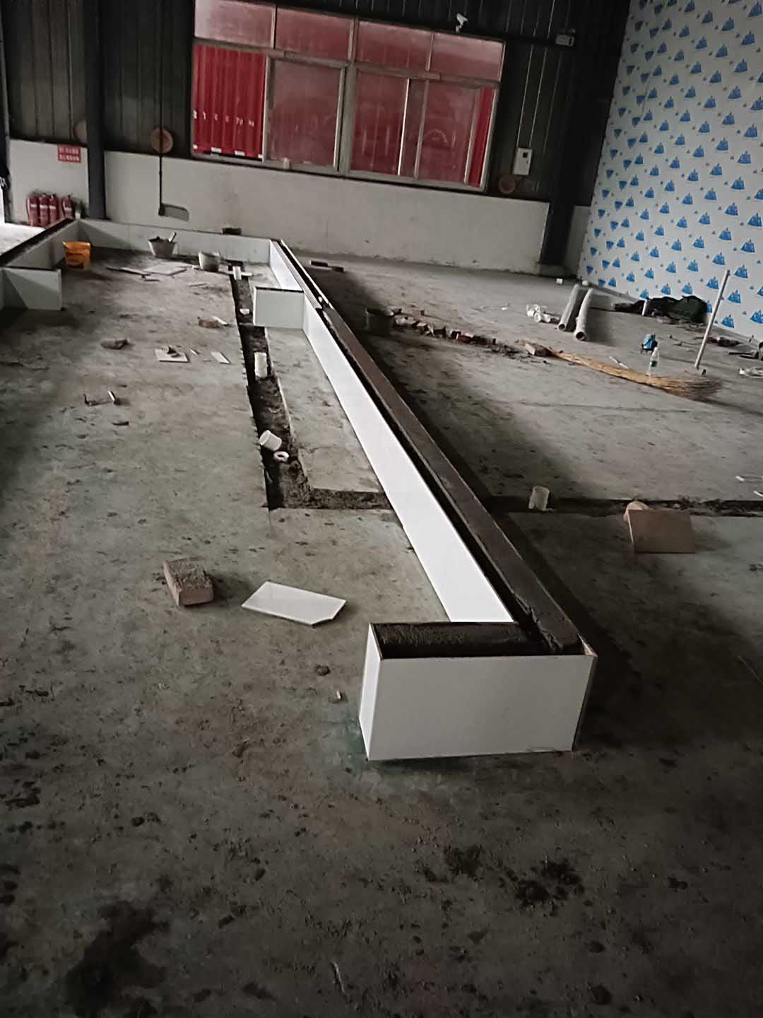 擋水墻貼瓷磚完成70% 排水完成80% 彩鋼板材料到現(xiàn)場(chǎng)