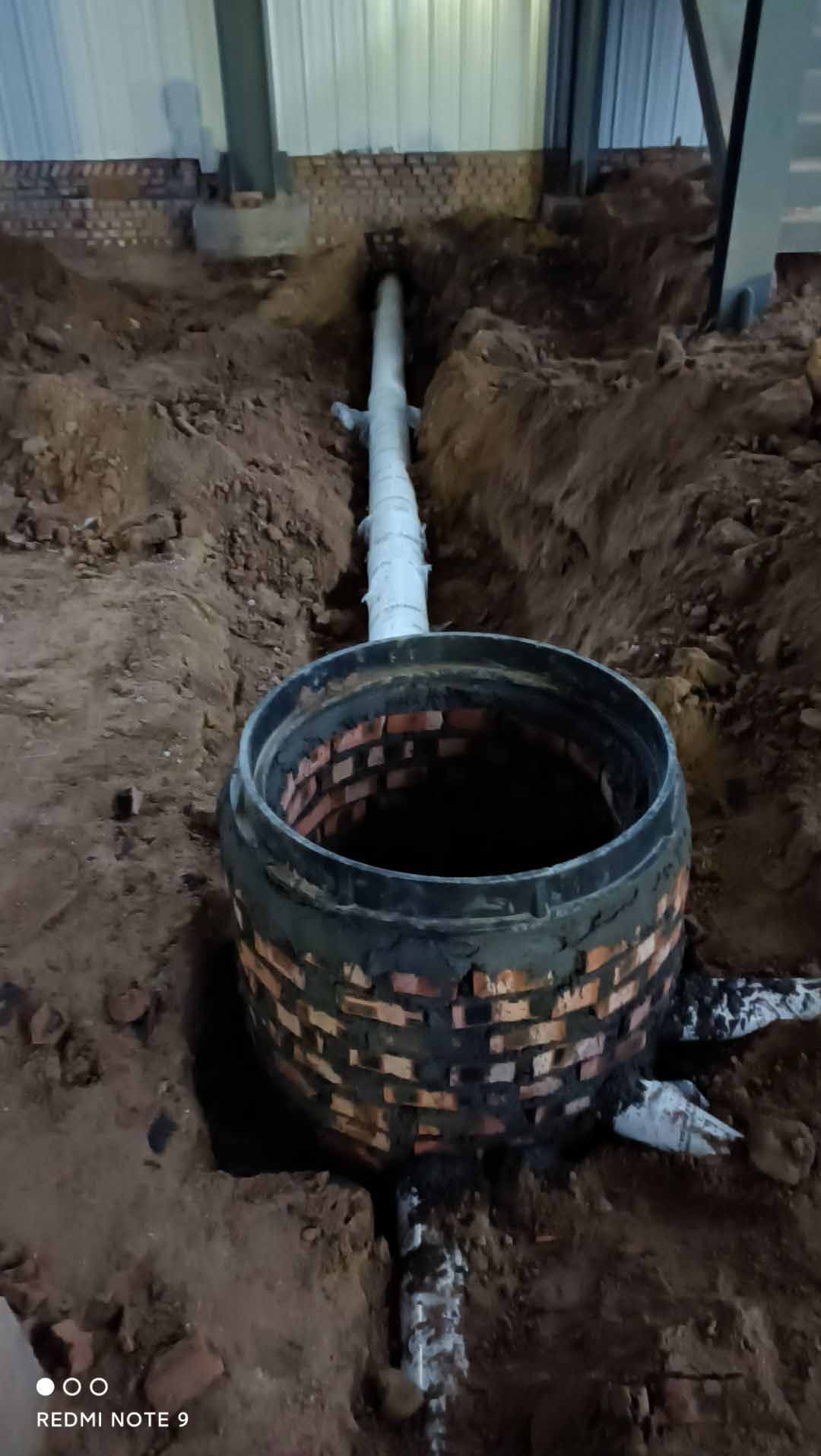 1.排水管暗管回填。 2.檢查井砌筑完成 3.場地平整準備澆筑混凝土墊層。