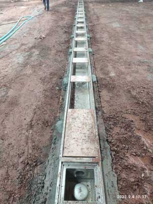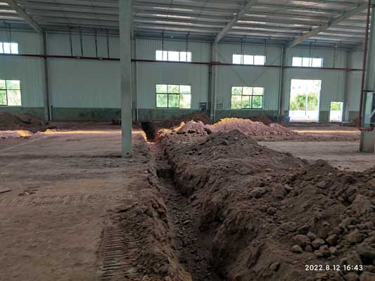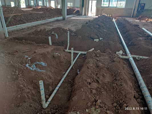 1,排水明溝找坡回填完成,墊層完成5%; 2,平整溝邊回填土完成80%; 3,溝邊回填土夯實完成; 4,室外排水管接排水井完成60%。