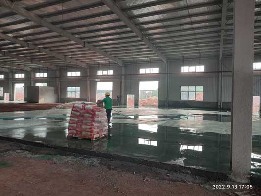 1、金剛砂收面完成 2、擋水墻砌筑完成60% 3、彩鋼板到場15%