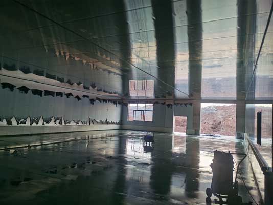 1,排水明溝底部瓷磚完成75% 2,混凝土及金剛砂收面完成25%