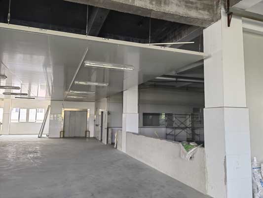 1,彩鋼墻板施工第20天,除預(yù)留區(qū)域外完成進度100% 2,彩鋼頂板施工第30天,完成進度99%。 3,水電照明安裝施工第44天,除動力電外,完成進度80% 4,擋水墻貼瓷磚施工第31天,完成進度100% 5,彩鋼板收尾工作第34天,完成進度70% 6,新增衛(wèi)生間隔斷項目,施工第2天,完進度100% 7,新增包柱子施工第19天,完成進度100% 8,原有紗窗已完成全部換新 9,原有土建墻體已完成全部乳膠漆