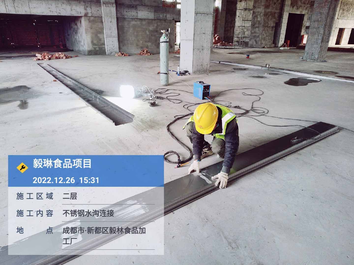 1:二樓不銹鋼水溝焊接完成100% 2、二層擋水墻抹灰完成50% 3、二層擋水墻砌體完成90% 4、二層擋水墻砌體衛生整理 5、二層不銹鋼排水溝打磨完成