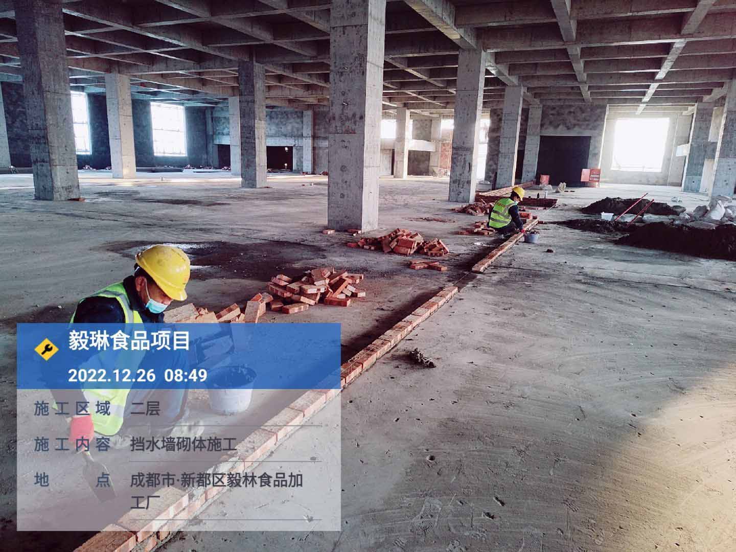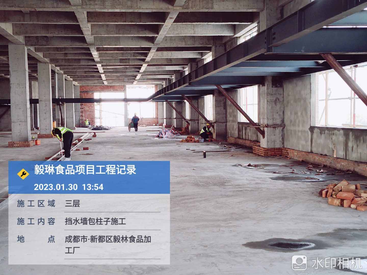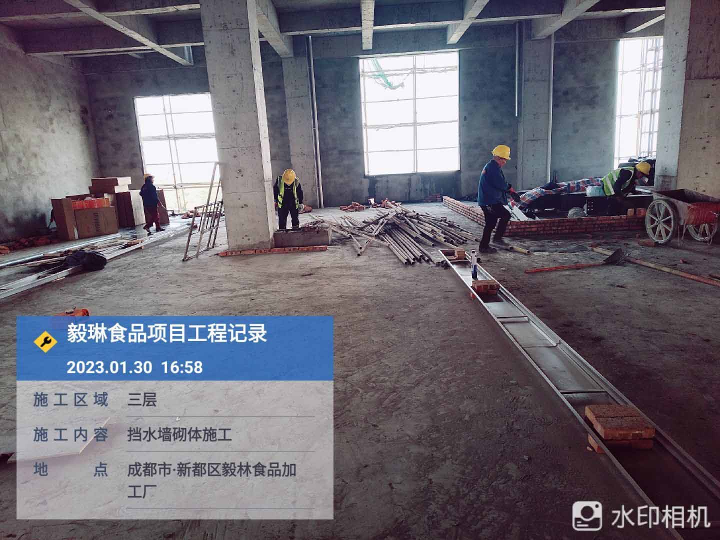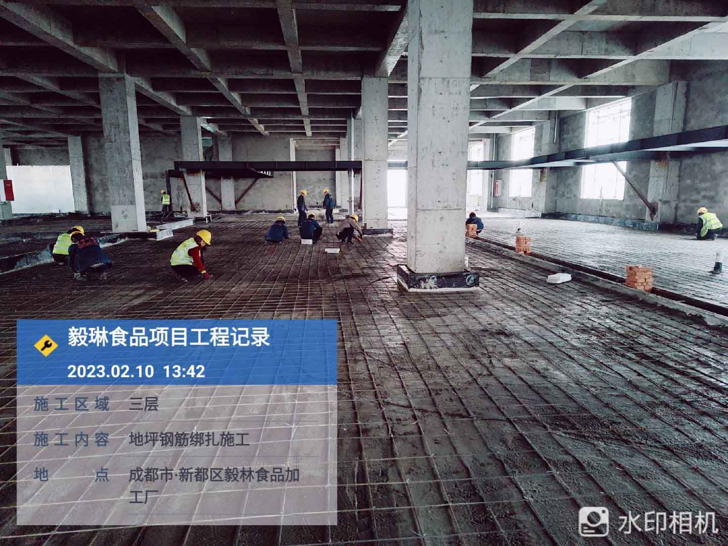 1:三層地坪施工完成50% 2、二層地坪施工完成90% 3、二層設備平臺角鋼裝50% 4、四層凍庫頂板完成30% 5、二層擋水墻貼磚完成70% 6、四層冷媒井拆除吊洞完成 8、三層凍庫地坪施工完成60%