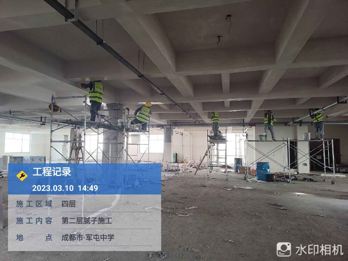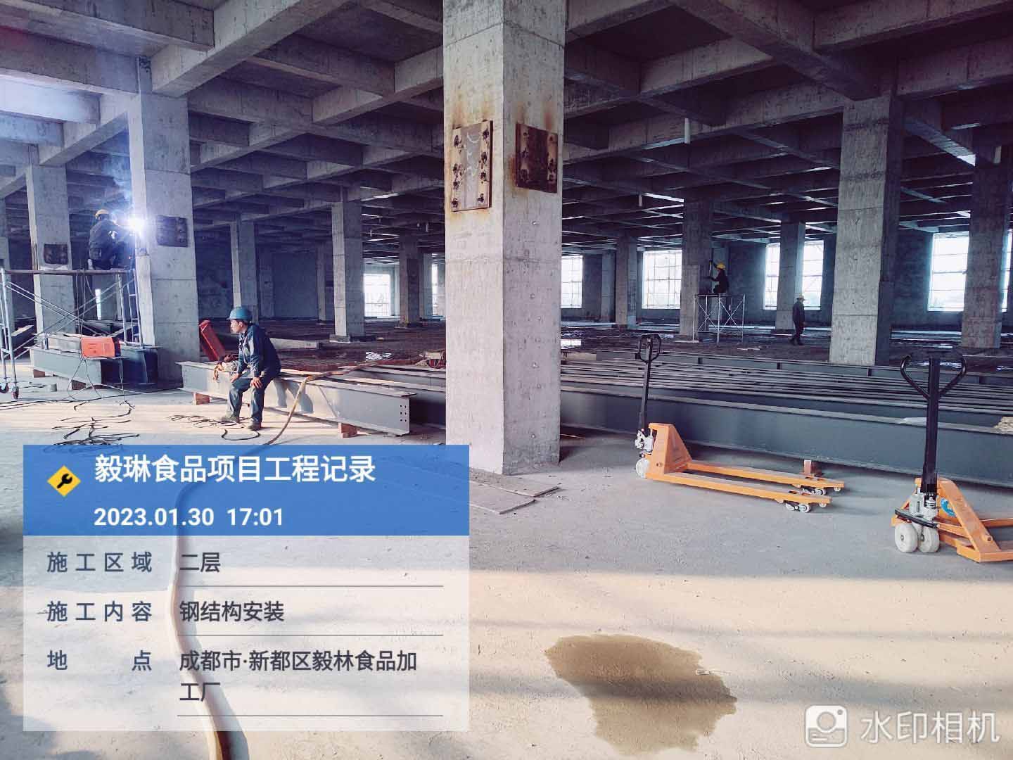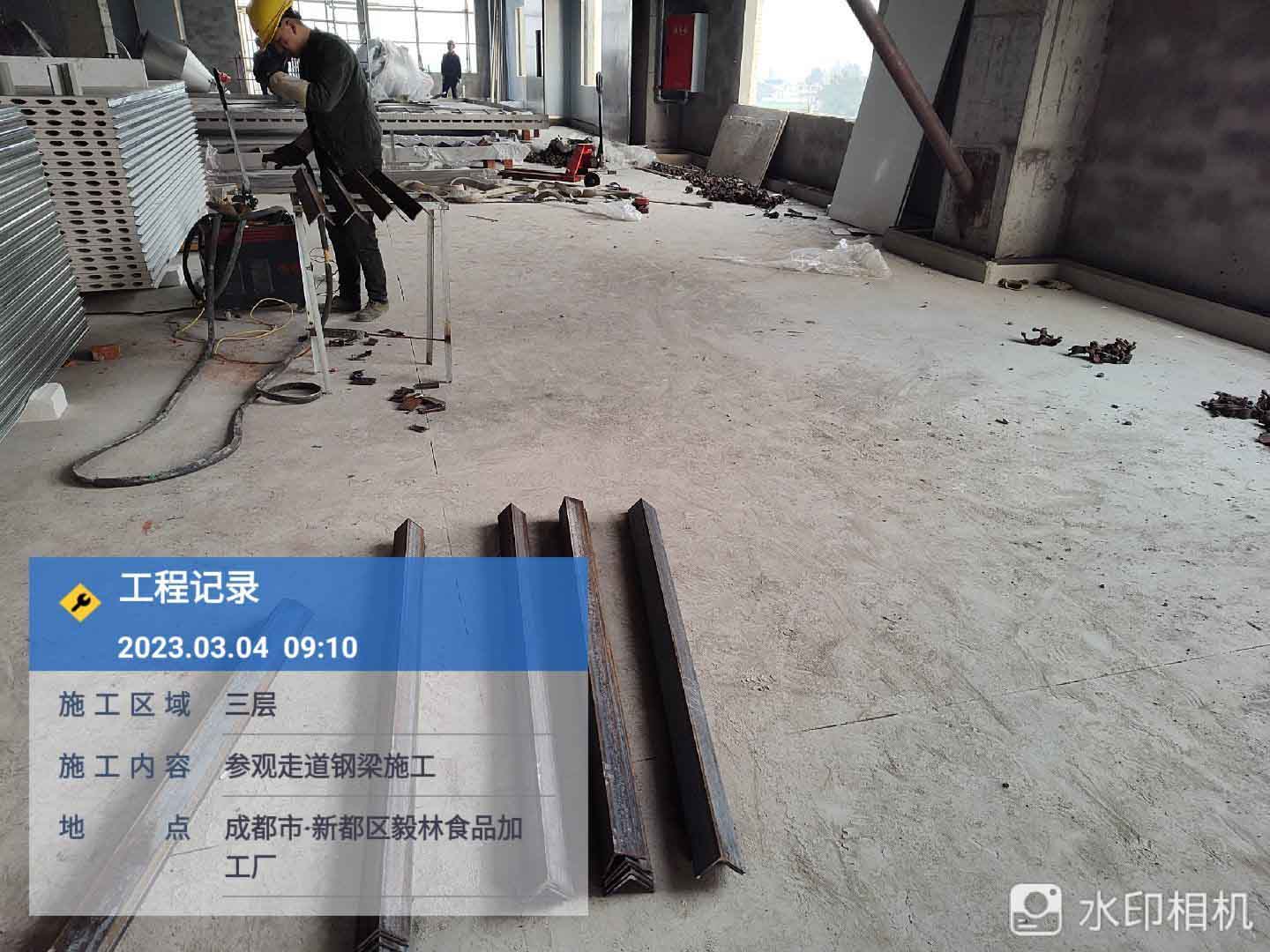 1、四層防水閉水中 2、三層燈具、電源線安裝完成40% 3、三層已安裝吊頂區域打膠收邊完成80% 4、三層冷水給水管安裝10% 5、二層彩板頂板30% 6、二層不銹鋼排水立管焊接30% 7、二三層參觀走道矩管框架焊接100%