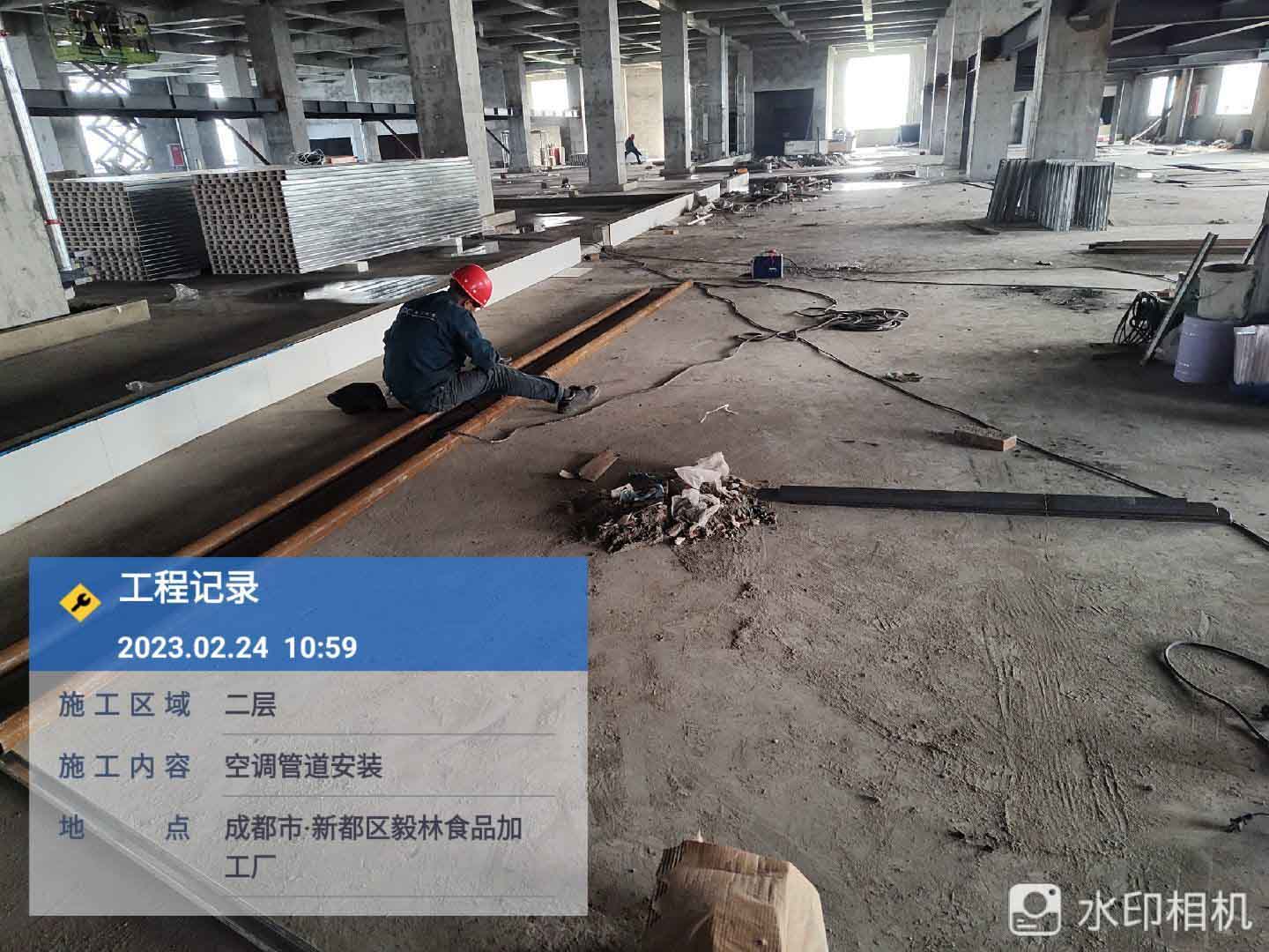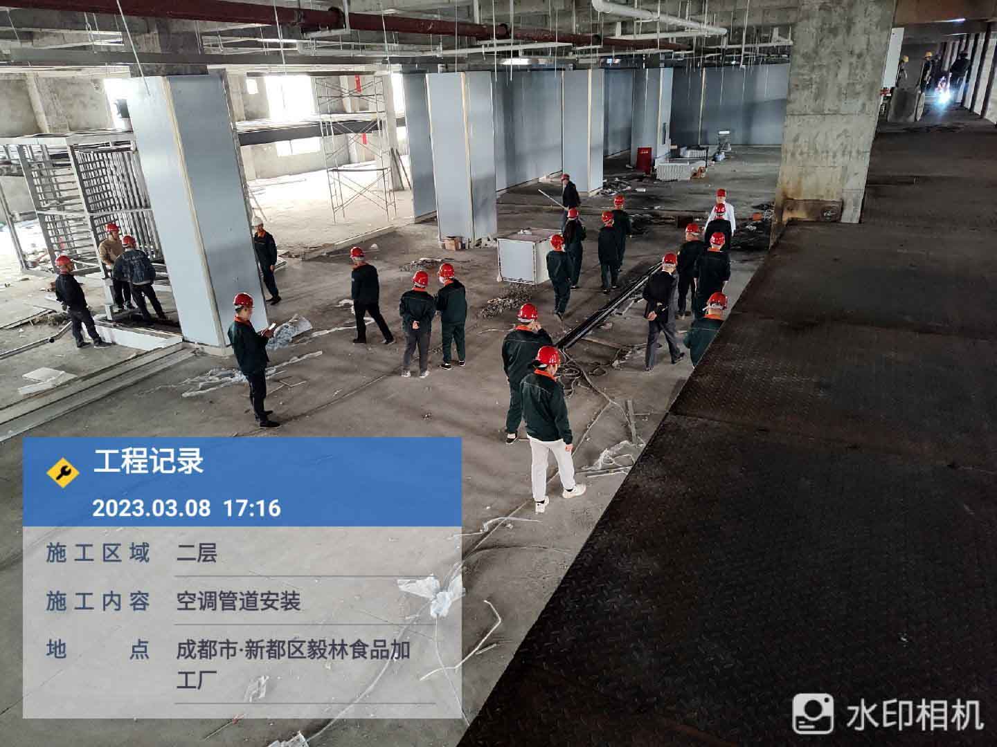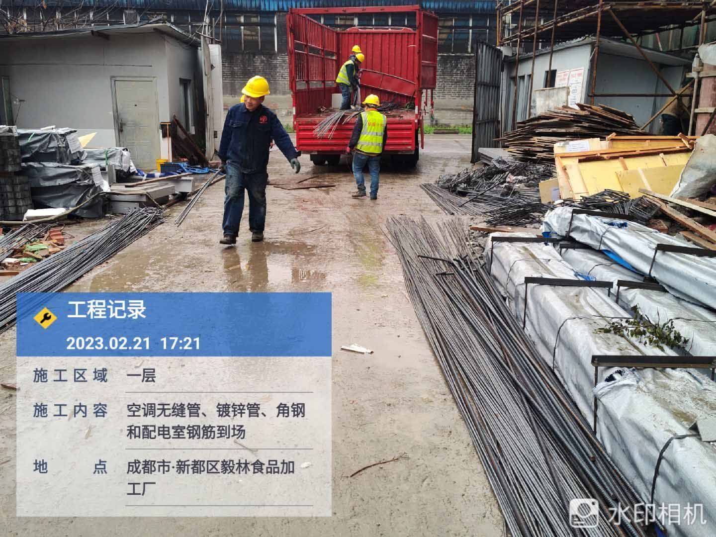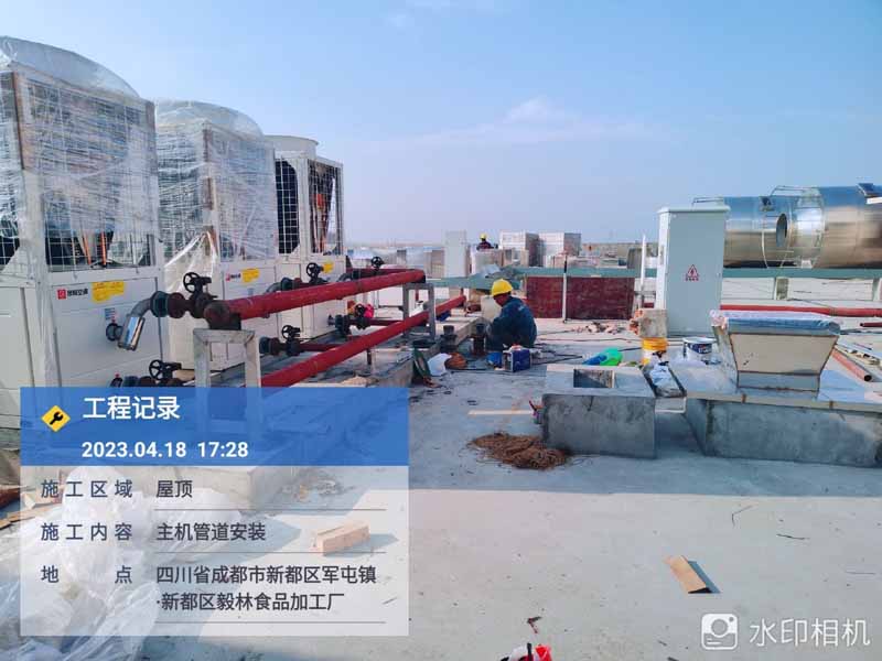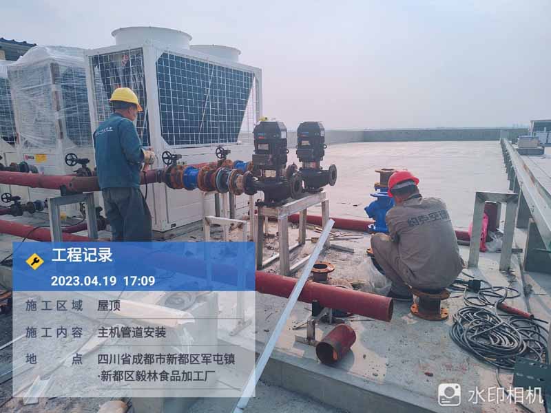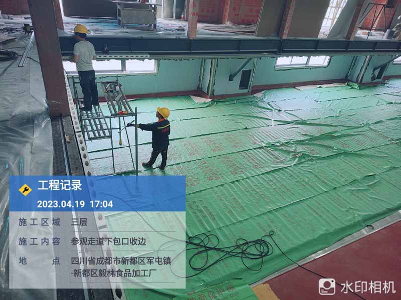 今日施工內容:1、屋面空調主機配管完成50% 2、三層剩余聚氨酯地面大沙完成100% 3、三層參觀走道角鋁安裝100% 4、二層火鍋料包裝區打磨切割完成80% 5、水泵進場驗收完成 6、地泵管道加固架管搭設90%