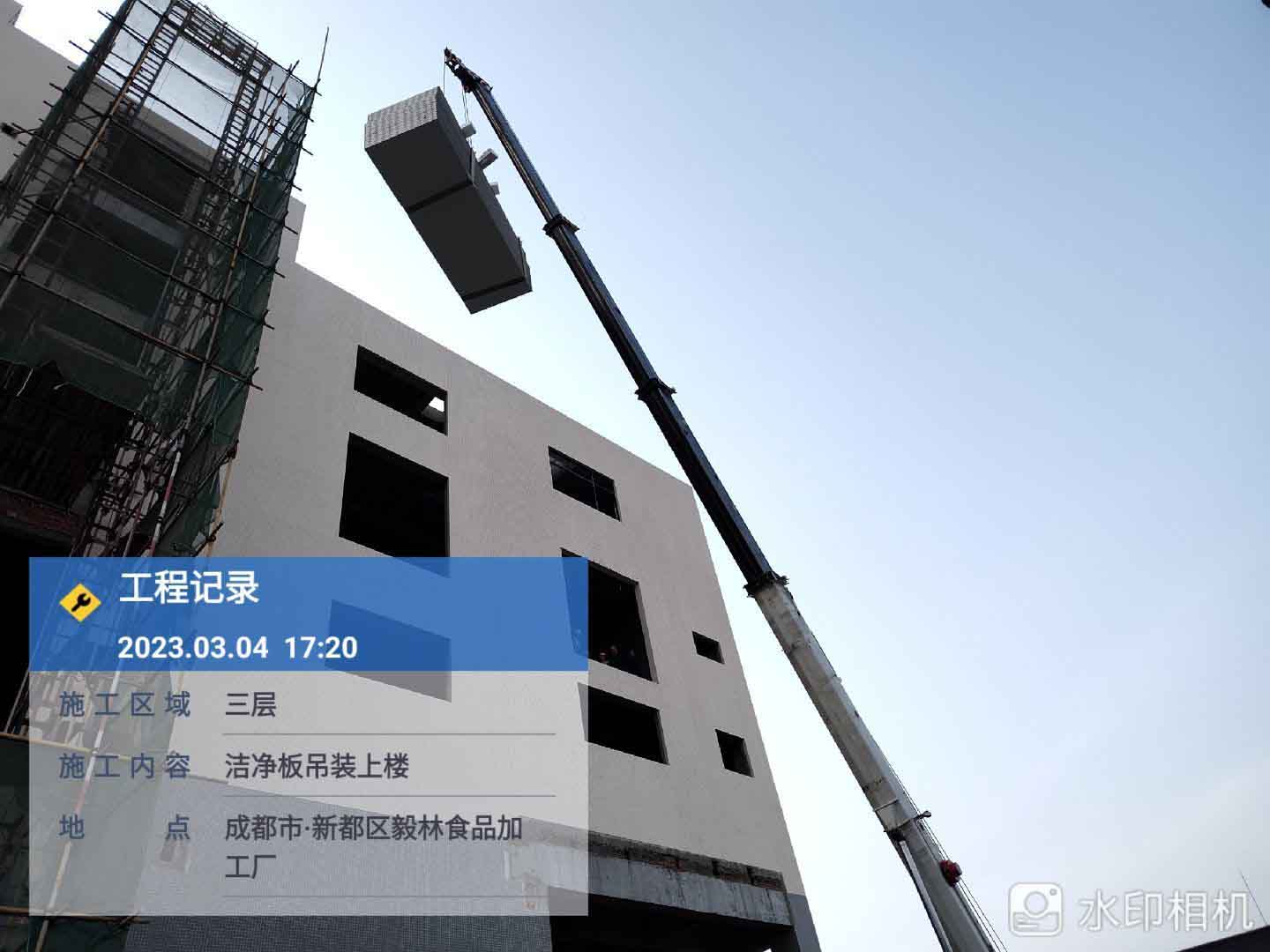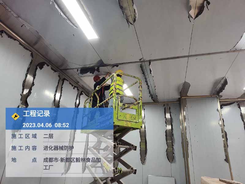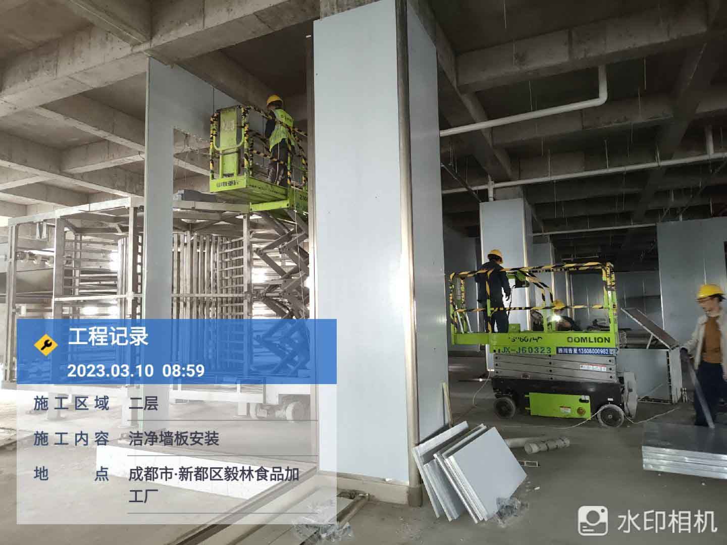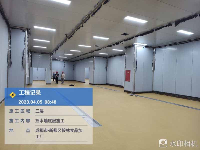 1、二層不銹鋼排水管完成50% 2、四層凍庫防水完成100%,蓄水中 3、四層第一片膩子施工完80%,第二遍膩子完成40% 4、墻板安裝完成90% 5、三層石膏完成60%,第一片膩子完成30% 6、三層潔凈墻板安裝完成85%、吊頂安裝完成35% 7、加工區門選色、水溝蓋送樣板確認完成 8、二三層參觀走道鋼板開孔、收尾