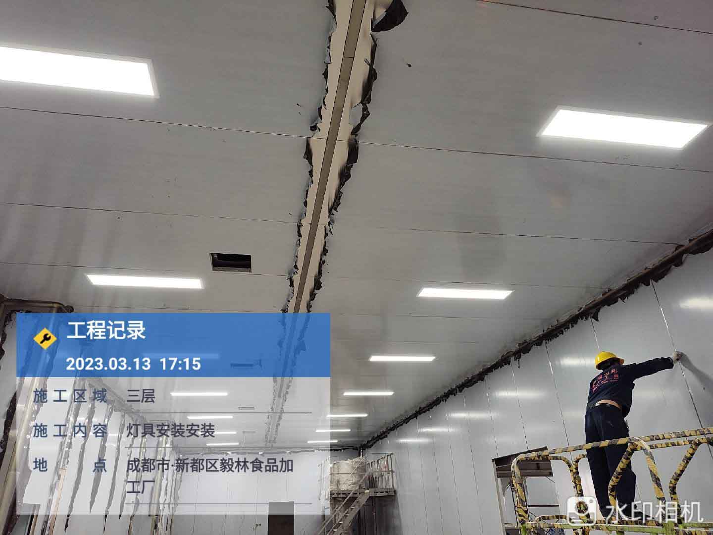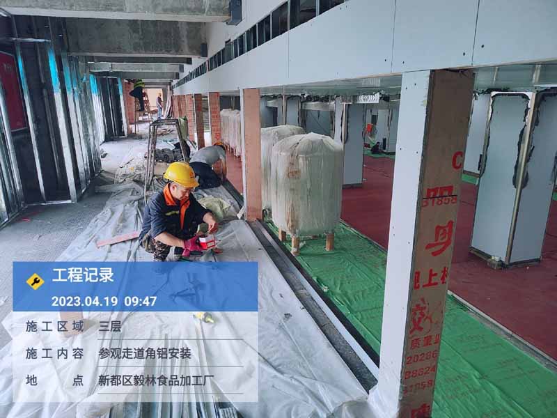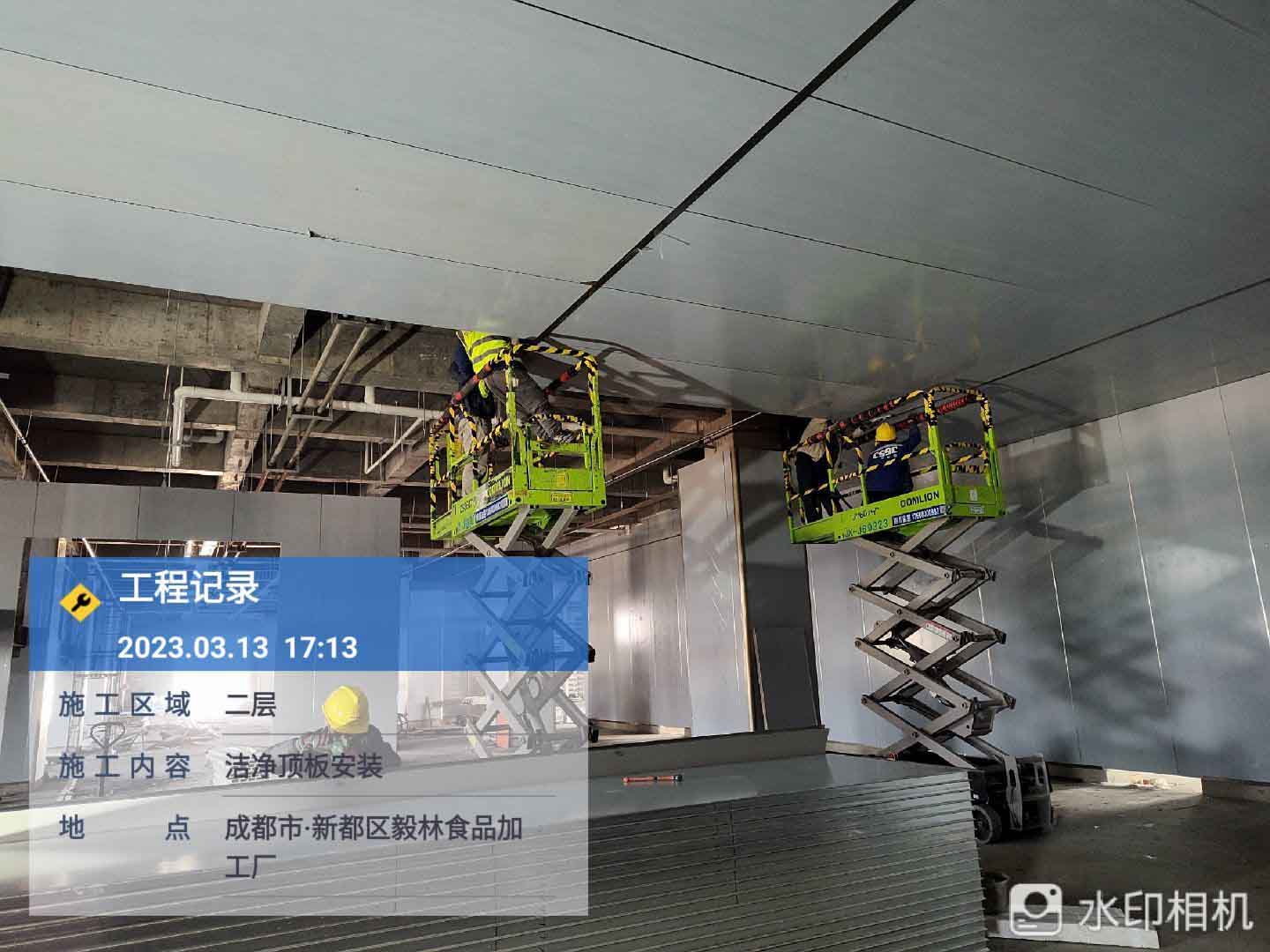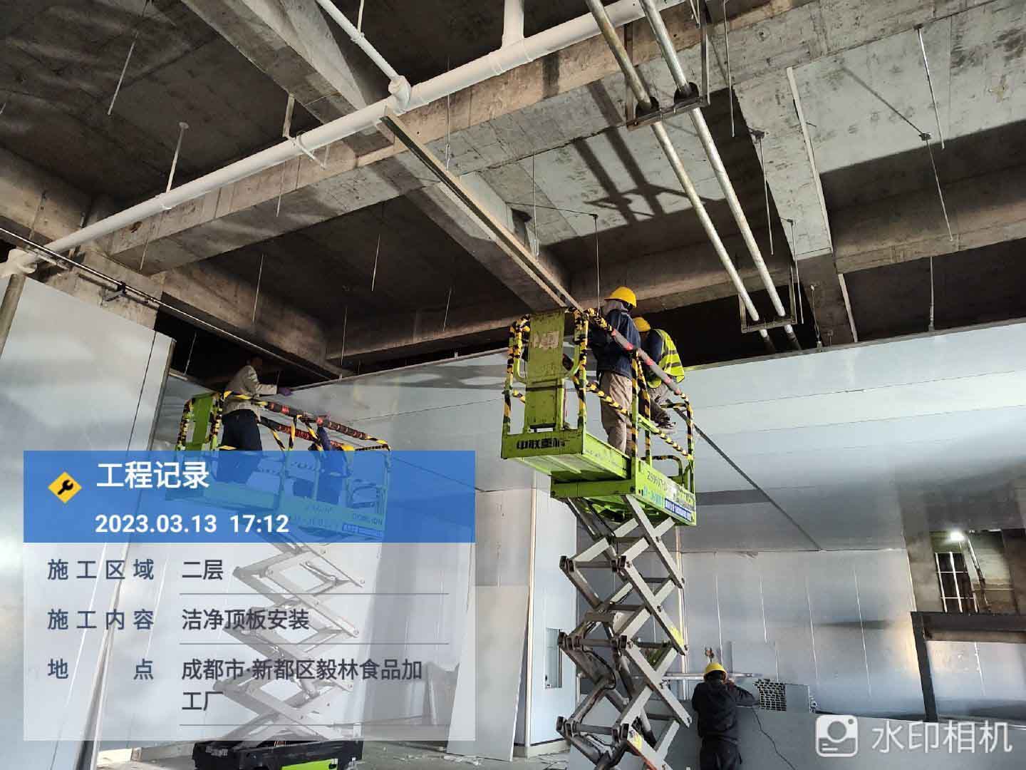 1、二層不銹鋼排水管完成50% 2、四層凍庫防水完成100%,蓄水中 3、四層第一片膩子施工完80%,第二遍膩子完成40% 4、墻板安裝完成90% 5、三層石膏完成60%,第一片膩子完成30% 6、三層潔凈墻板安裝完成85%、吊頂安裝完成35% 7、加工區門選色、水溝蓋送樣板確認完成 8、二三層參觀走道鋼板開孔、收尾