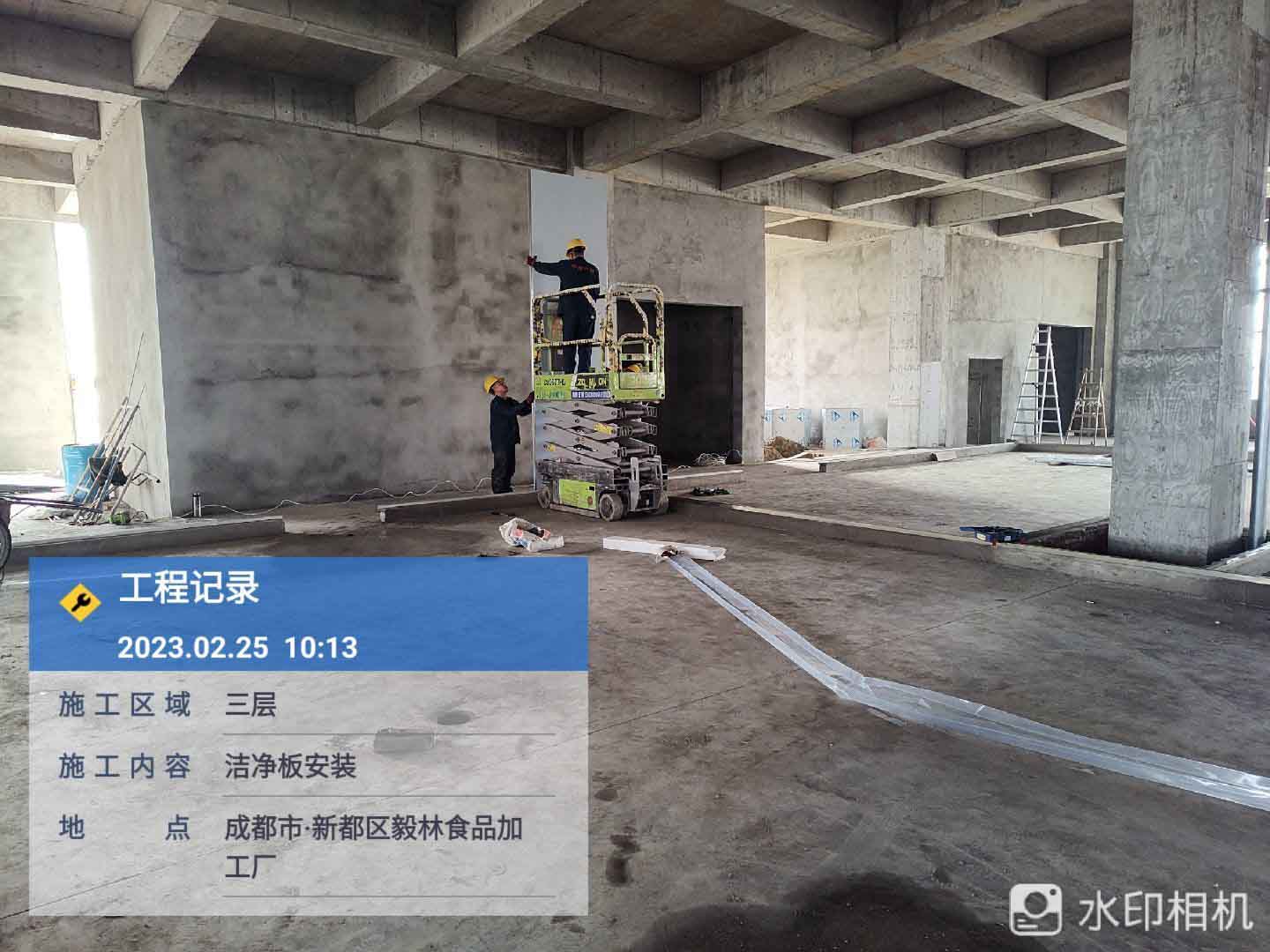 1、三層潔凈墻板安裝完成80% 2、三層頂板安裝10% 3、空調水管立管完成80% 4、三層參觀走道角鐵安裝30% 5、三層PVC排水管完成30%,二層完成30% 6、四層石膏膩子施工完成60% 7、二層墻板安裝30%